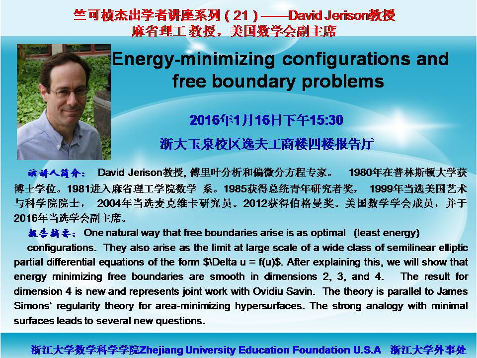学术科研 学术团队 学术活动 学术会议 学术报告 讨论班 School Colloquium 信息公告 文件汇编 学术活动 乐竞官网平台 > (1月16日)竺可桢杰出学者讲座系列之David Jerison教授报告 来源:乐竞(中国)一站式服务平台 发布时间:2017-01-07 1246