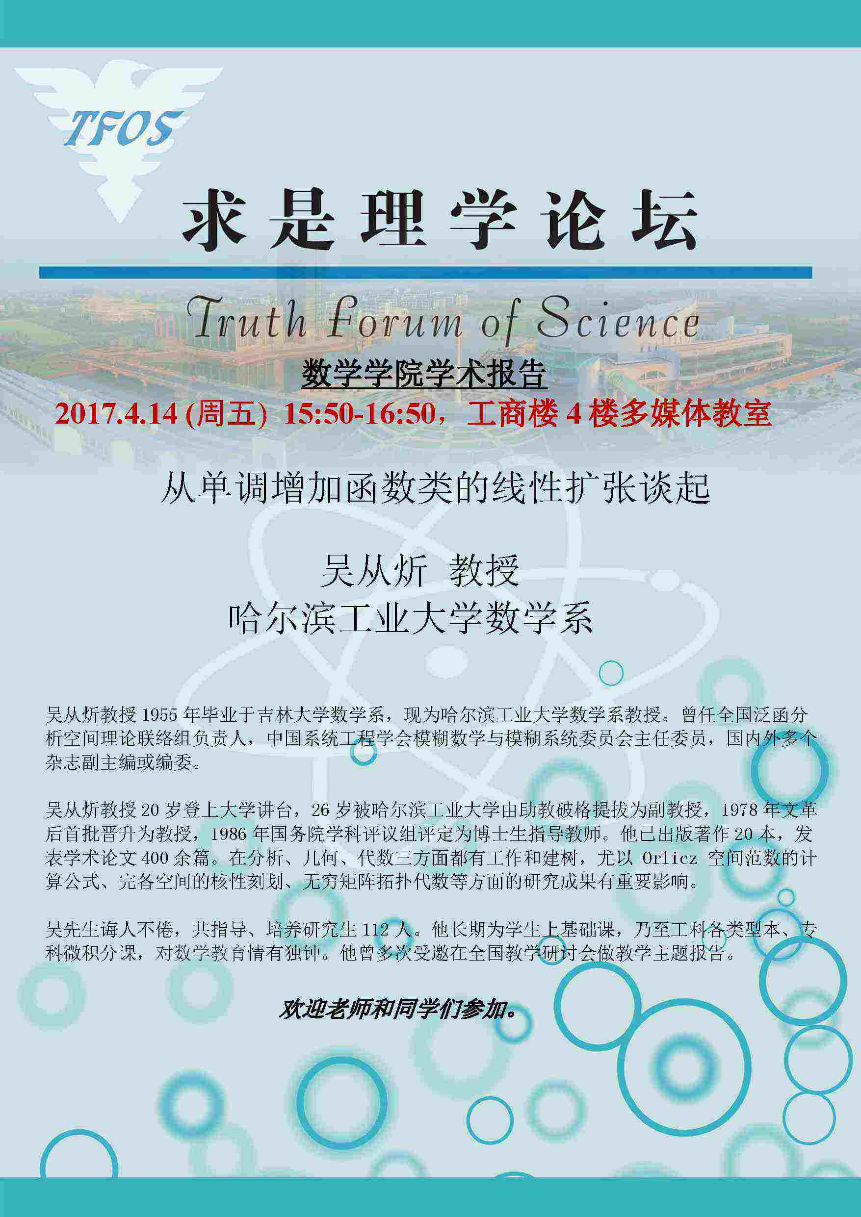 学术科研 学术团队 学术活动 学术会议 学术报告 讨论班 School Colloquium 信息公告 文件汇编 2017 乐竞官网平台 > (4月14日)从单调增加函数类的线性扩张谈起 来源:乐竞(中国)一站式服务平台 发布时间:2017-04-13 859