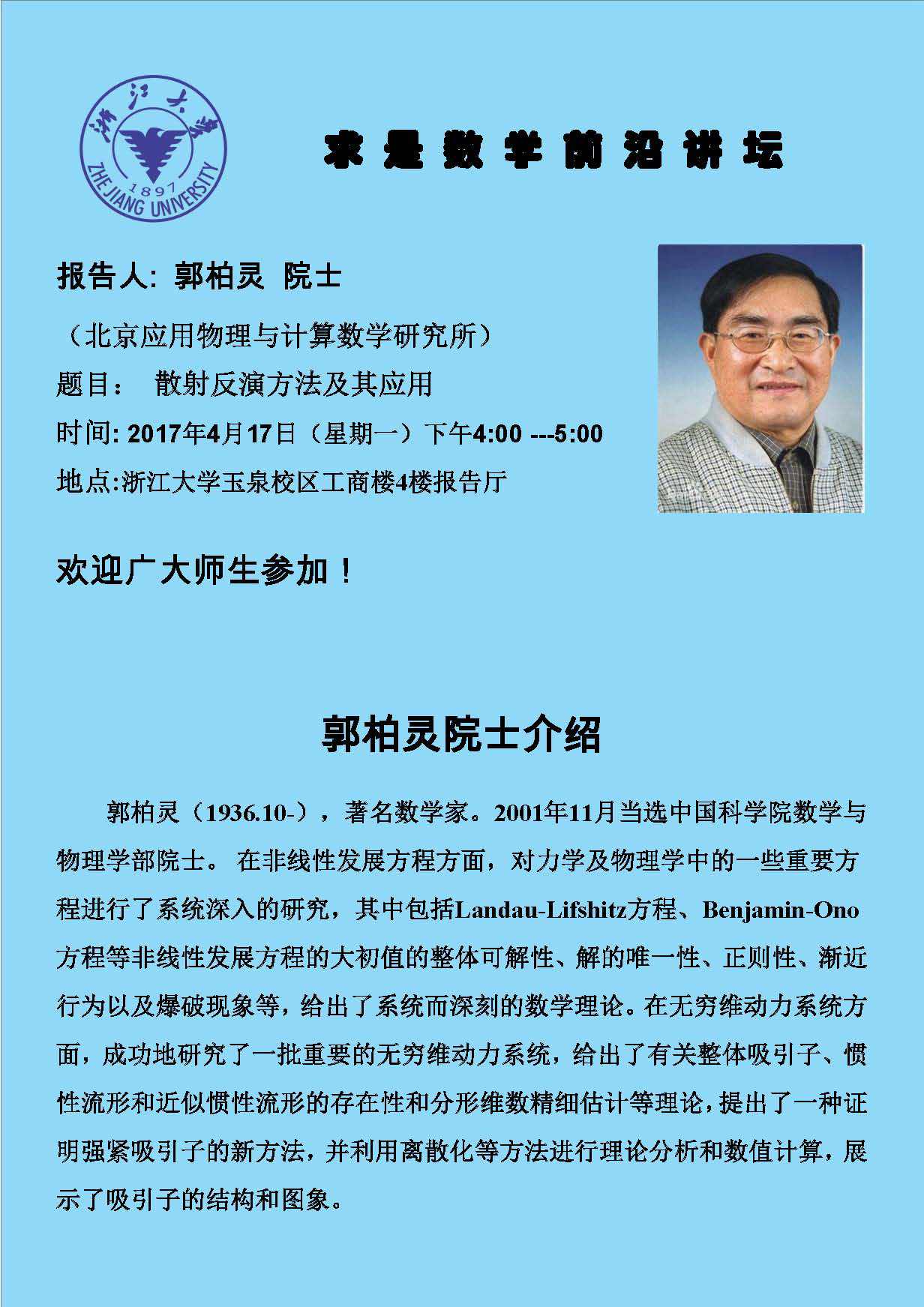 学术科研 学术团队 学术活动 学术会议 学术报告 讨论班 School Colloquium 信息公告 文件汇编 2017 乐竞官网平台 > 求是数学前沿讲坛之郭柏灵院士讲座 来源:乐竞(中国)一站式服务平台 发布时间:2017-04-14 1103