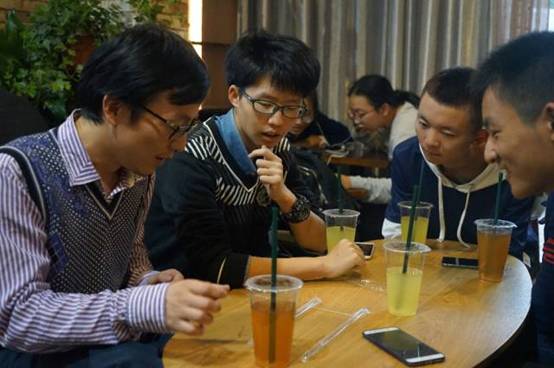 交流会上,师生围坐在桌前,畅谈自己对学习,社会以及人生的看法。