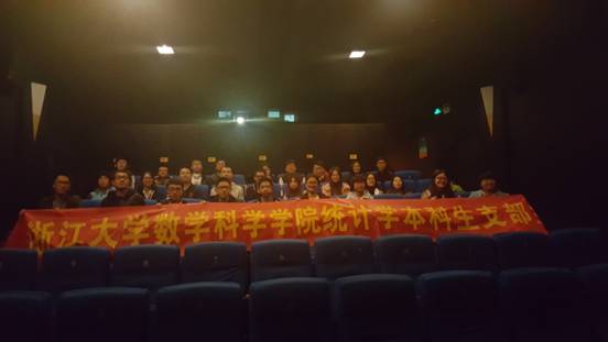 2018年3月12日,浙江大学本科生统计党支部召开了本学期的第一次党支部会议。不同于上个学期,这一次会议统计党支部走出办公室,进入影院。在党支部书记邵�老师的带领下,肖博、高悦、金世豪、陈阳、陈银婕、郭相楷、胡日成、袁纬捷、项伟桂、鲁杰沁、胡日成和邓婕等人观看了《厉害了,我的国》。观影结束后,各党支部成员撰写了影评,交流了观影后的自豪感。