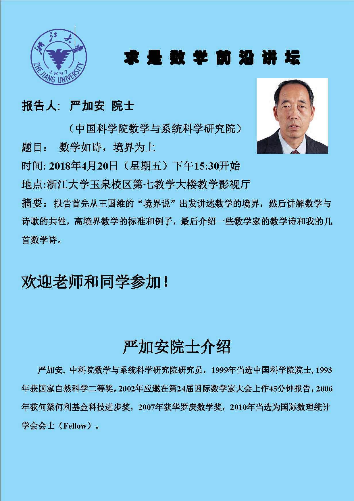 学术科研 学术团队 学术活动 学术会议 学术报告 讨论班 School Colloquium 信息公告 文件汇编 2018 乐竞官网平台 > 严加安院士题为“数学如诗,境界为上”的公众演讲 来源:乐竞(中国)一站式服务平台 发布时间:2018-04-08 763