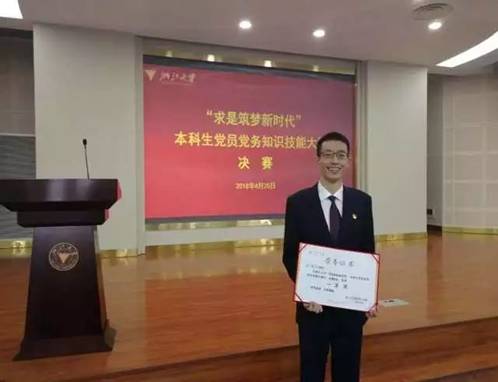喜报!我院党员任泊阳获得浙江大学本科生党员党务知识技能大赛第一名