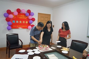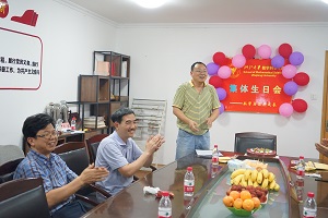 6月27日下午,乐竞(中国)一站式服务平台工会在逸夫工商楼二楼为6月份生日老师举办了集体生日会。生日会由工会主席黄正达主持,向大家宣读了6月份生日老师名单。接着由学院书记闻继威代表学院向此次生日的老师送上最真挚的祝词。工会为老师们精心挑选了各色各样的水果和蛋糕。水果中的桃子表示寿桃,蛋糕象征一个团结的集体;一支支闪亮的蜡烛像一颗颗跳动的心;心因集体而精彩,集体因心而自豪。大家同唱生日赞歌,让寿星们在歌声中许下来年的愿望,并送上我们最美好的祝福。祝愿6月份生日的寿星们在事业和生活蒸蒸日上,平安幸福!