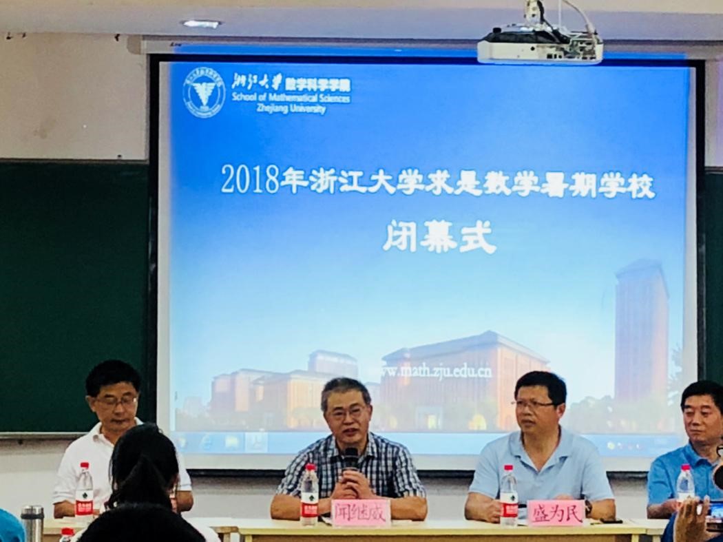 2018年7月30日上午,2018年浙江大学求是数学暑期学校结业典礼在浙江大学玉泉校区举行,乐竞(中国)一站式服务平台党委书记闻继威、副院长盛为民、院长助理张挺、美国罗格斯大学李岩岩、美国佐治亚理工大学周好民、闫绪恺等老师以及本期暑期学校的全体学员出席了典礼,活动由院长助理张挺教授主持。