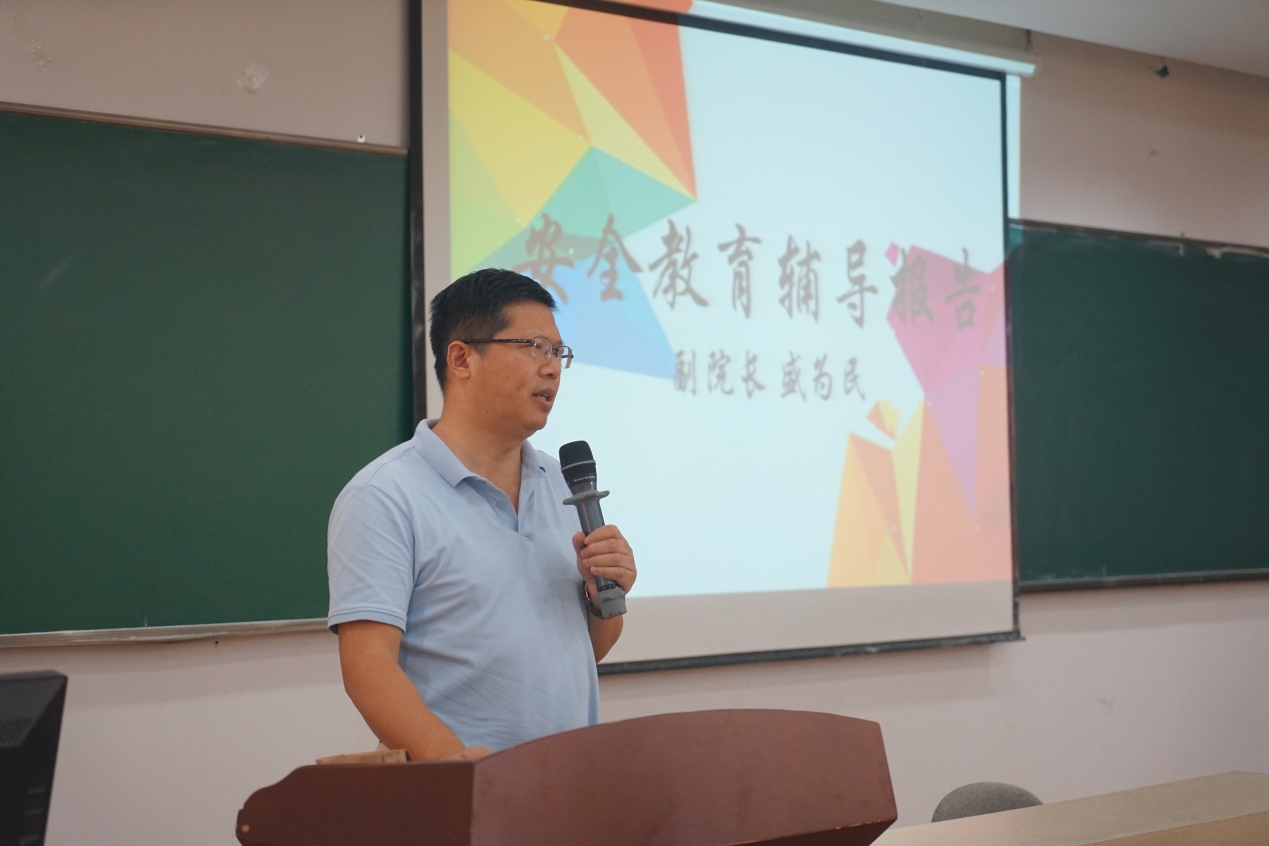 副院长盛为民老师对校园安全现状、校园安全教育的必要性给予了阐述,让全体新生意识到了安全教育的重要性和紧迫性。同时,他结合近年发生的校园安全事故案例,向全体新生强调实验室安全问题不容忽视,研究生新生应遵守实验室行为准则,树立安全意识,为营造安全良好的学习科研环境做出贡献。