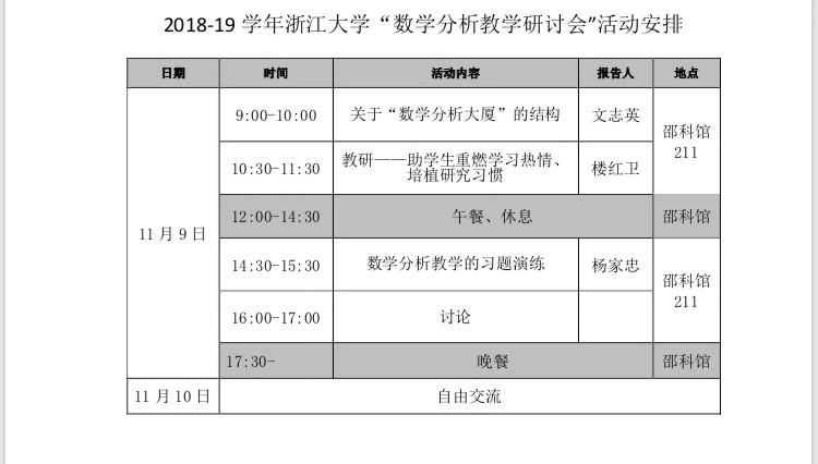 2018-2019学年浙江大学“数学分析教学研讨会”通知