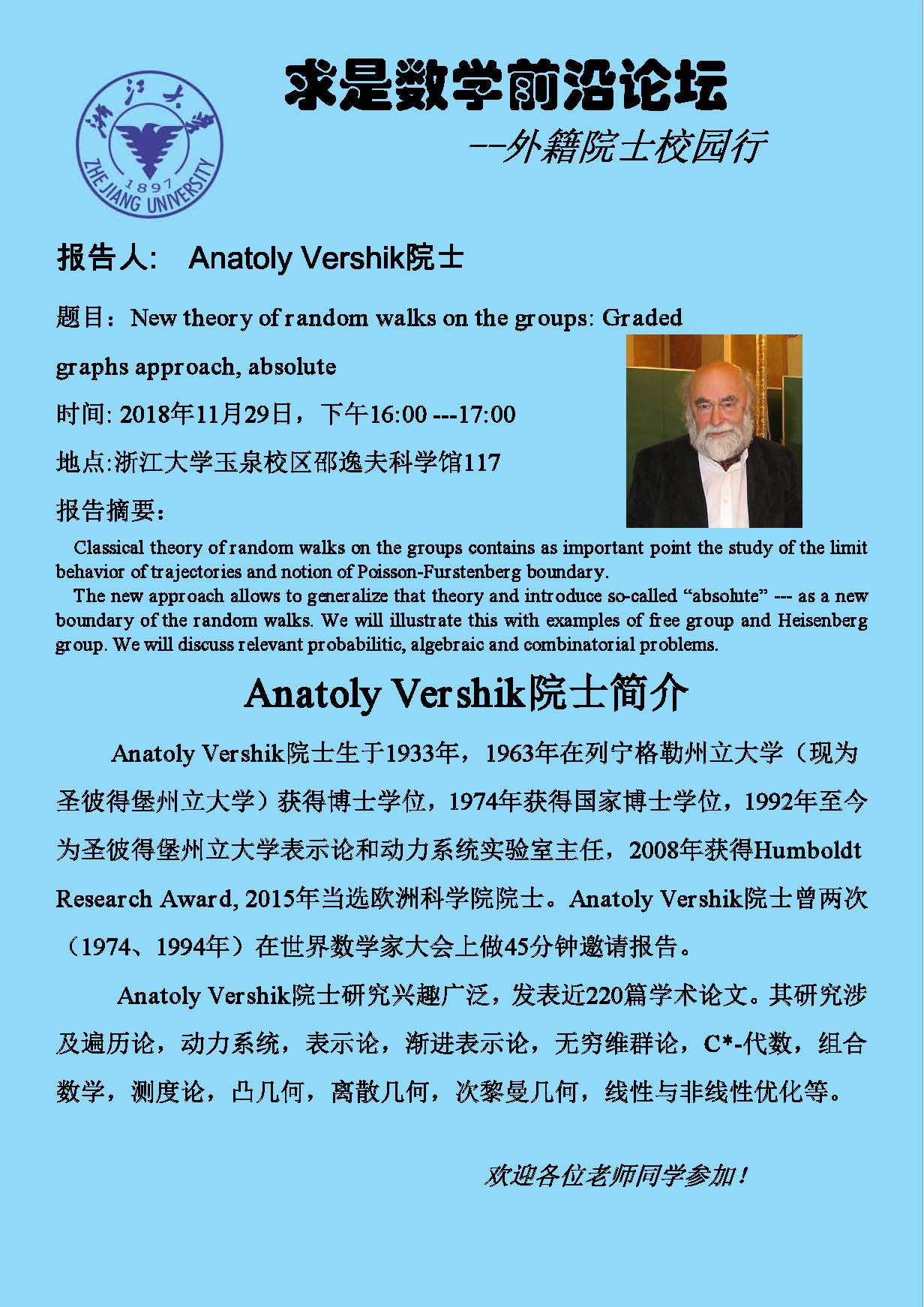 学术科研 学术团队 学术活动 学术会议 学术报告 讨论班 School Colloquium 信息公告 文件汇编 2018 乐竞官网平台 > 求是数学前沿论坛之Anatoly Vershik院士讲座 来源:乐竞(中国)一站式服务平台 发布时间:2018-11-23 1291