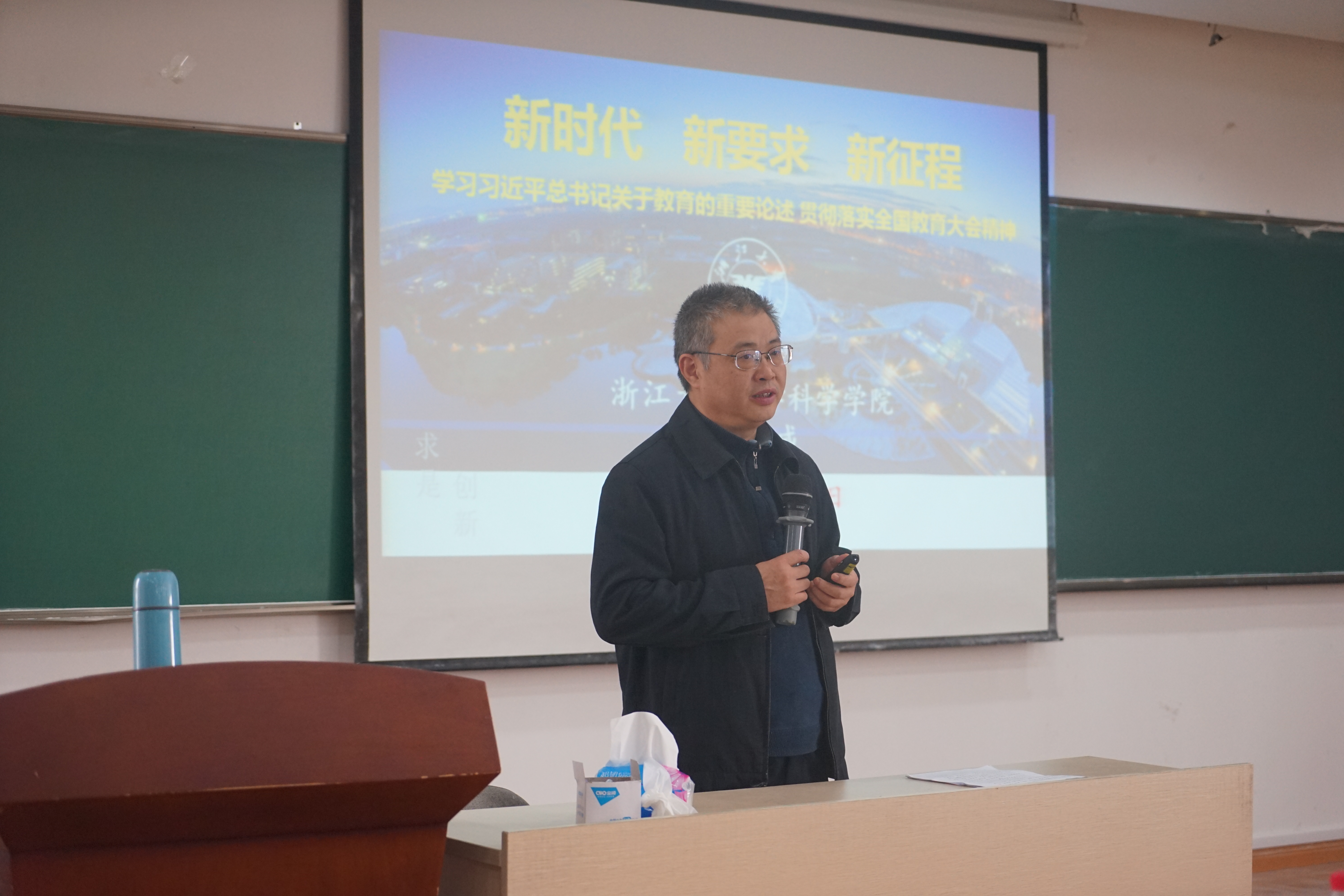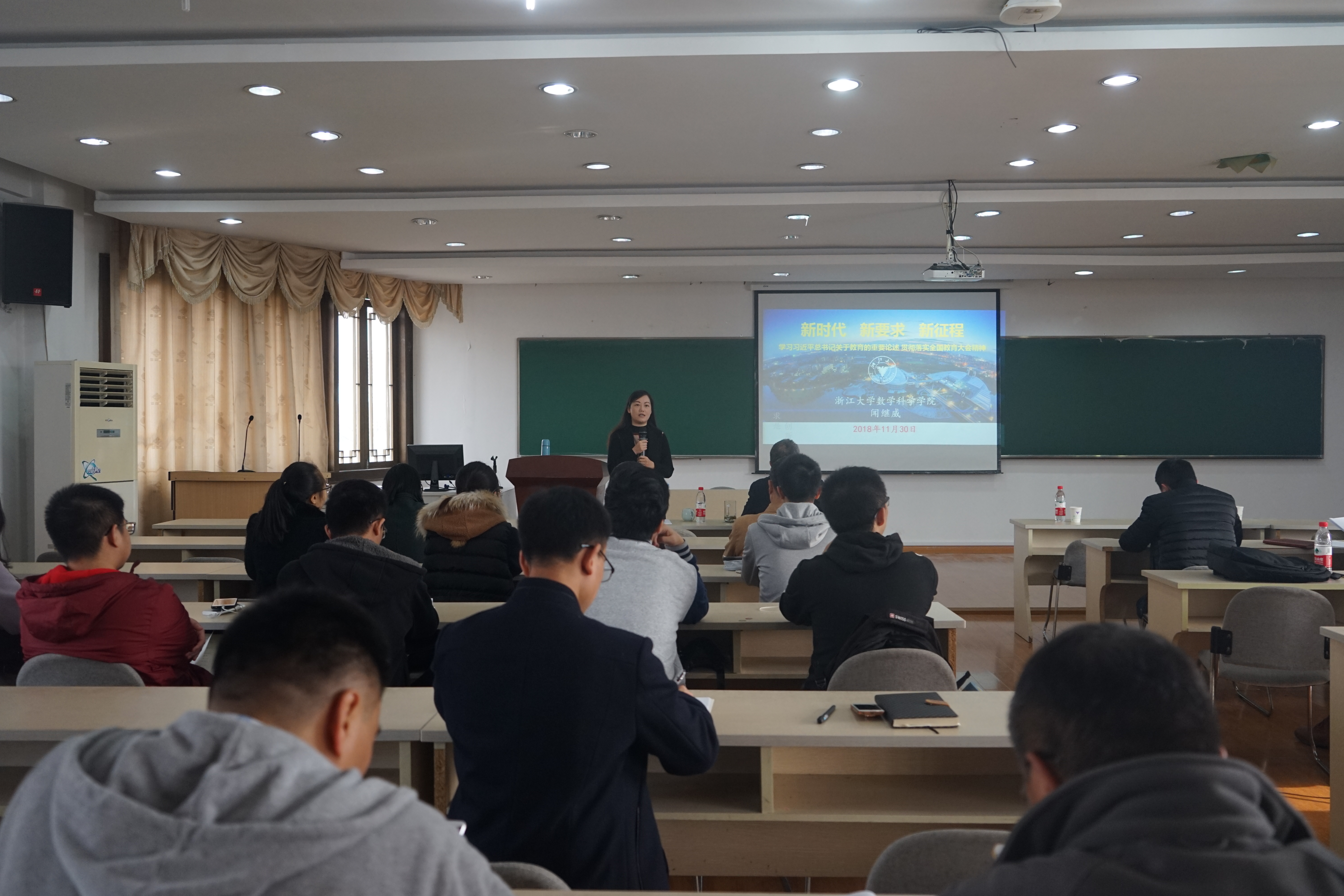 闻老师结合习近平总书记在全国教育大会上的重要讲话精神,主要从“准确把握世界高等教育的发展趋势”、“深刻领会全国教育大会精神的内涵和实质”、“主动开创数学教育新时代”三个方面展开宣讲。闻书记提出学院的全体党员要在全面深入贯彻落实大会精神上争当模范,以凝聚人心、完善人格、开发人力、培育人才、造福人民为工作目标,坚持增强定力、提升能力、挖掘潜力、激发活力,创抓机遇,早日建成中国特色世界一流数学学科,为实现中华民族伟大复兴的中国梦作出更大贡献。