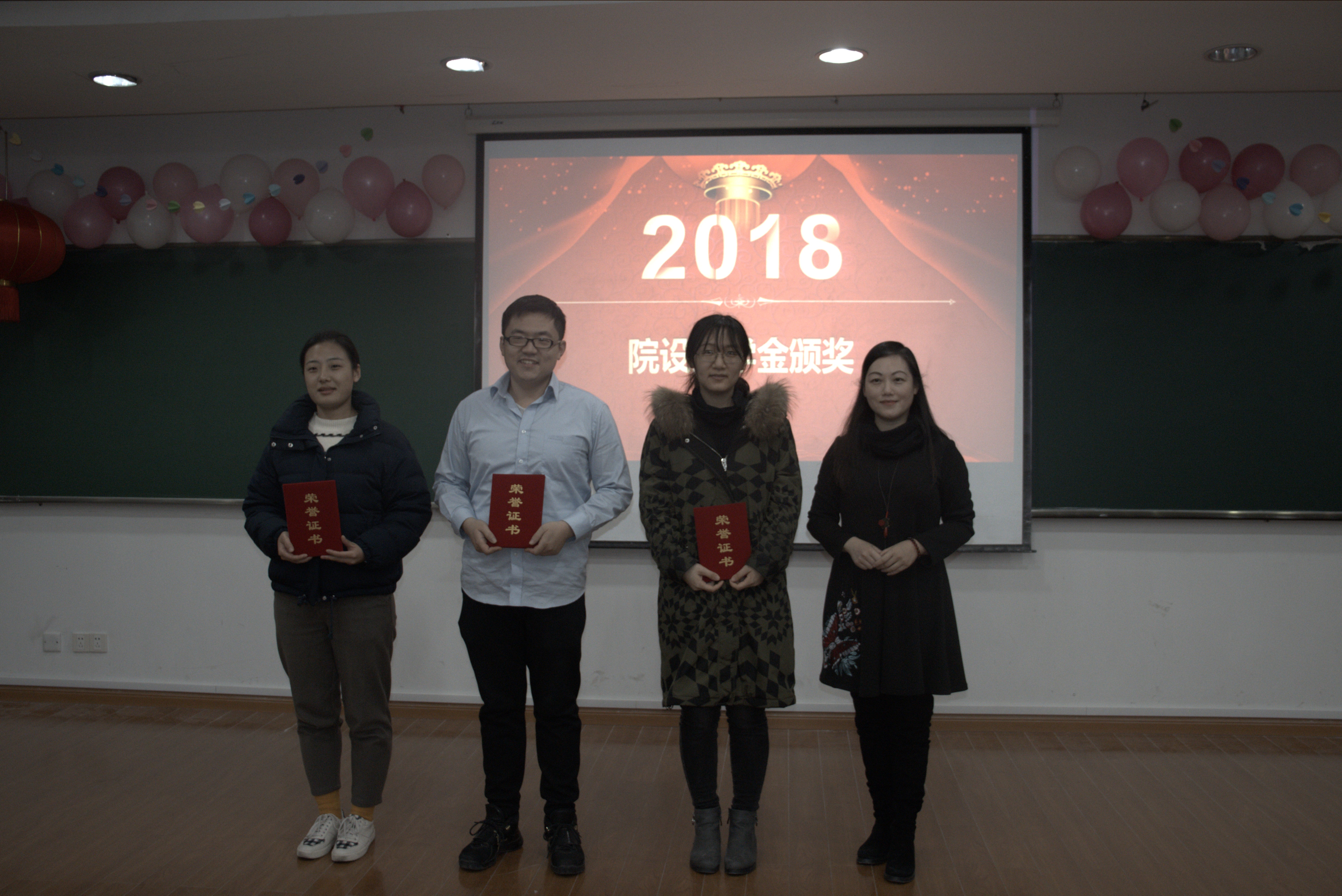 新晚伊始,学院党委书记闻继威老师首先发表新年致辞。在这一特殊时刻,闻老师表达了对学院师生的深情祝福和对数院未来的美好展望。随后,2017-2018学年院设奖学金颁奖仪式在庄重喜庆的氛围中进行,闻继威老师、李松老师和姚晨老师分别为获得院设奖学金(今明教育奖学金、郭竹瑞奖学金、中日友好饭店奖学金)的同学颁发荣誉证书,勉励数院学子在新的一年里再创佳绩。
