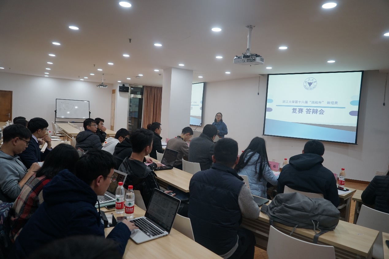 2019年1月11日下午,浙江大学第十六届“挑战杯”大学生课外学术科技作品竞赛数理类复赛答辩会在玉泉校区永谦活动中心B座111室成功举办。
