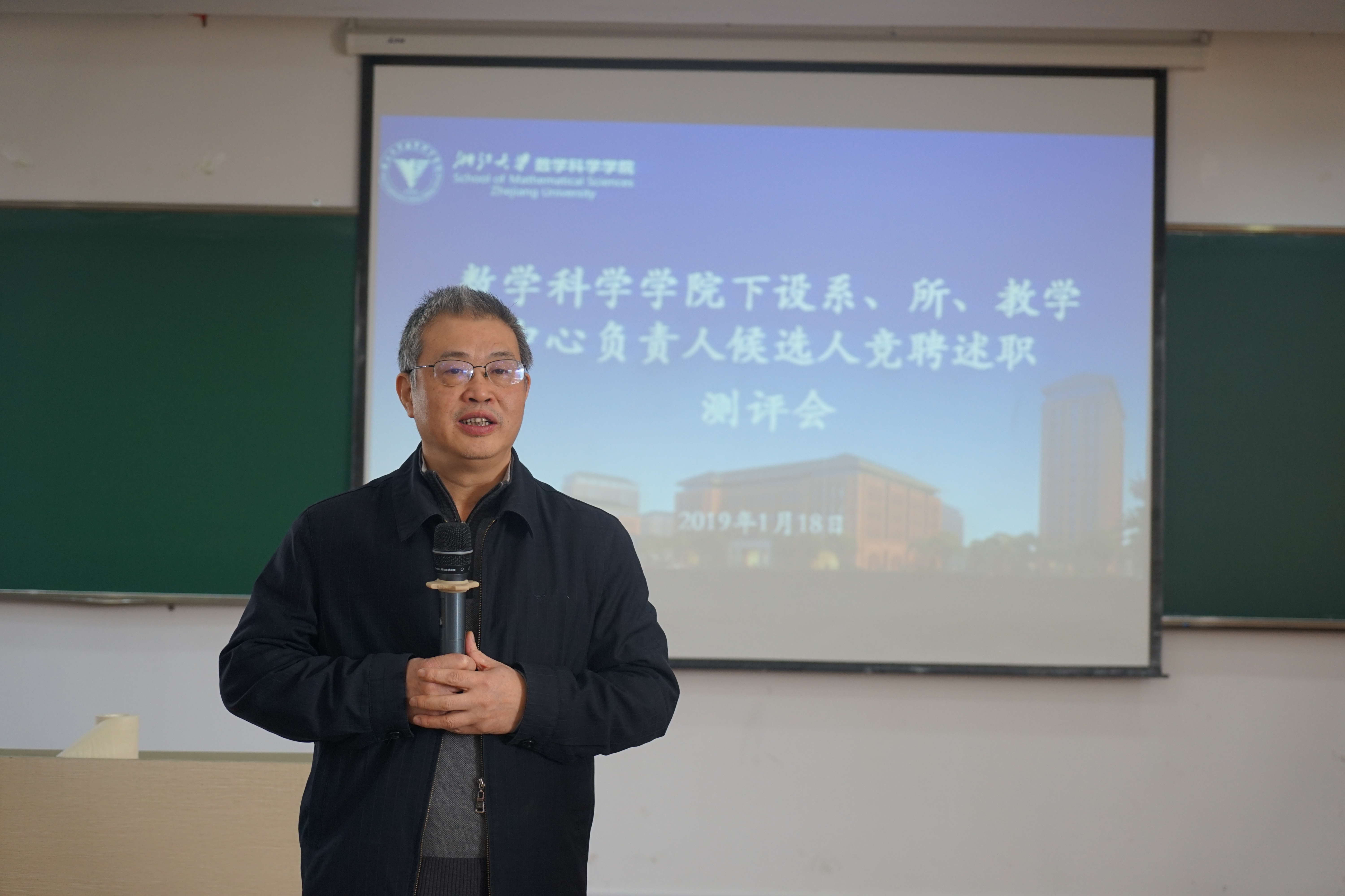 为进一步加强系、所、中心领导班子队伍建设,为学院新一轮发展奠定坚实的组织基础,切实推进学院“双一流”建设,乐竞(中国)一站式服务平台于2019年1月18日下午在玉泉校区工商楼四楼报告厅召开系、所、中心负责人公开竞聘会。会议由学院党委书记闻继威主持,学院院长包刚、学院副院长盛为民、学院副院长郜传厚、学院党委副书记姚晨、及全体教职工参加此次会议。