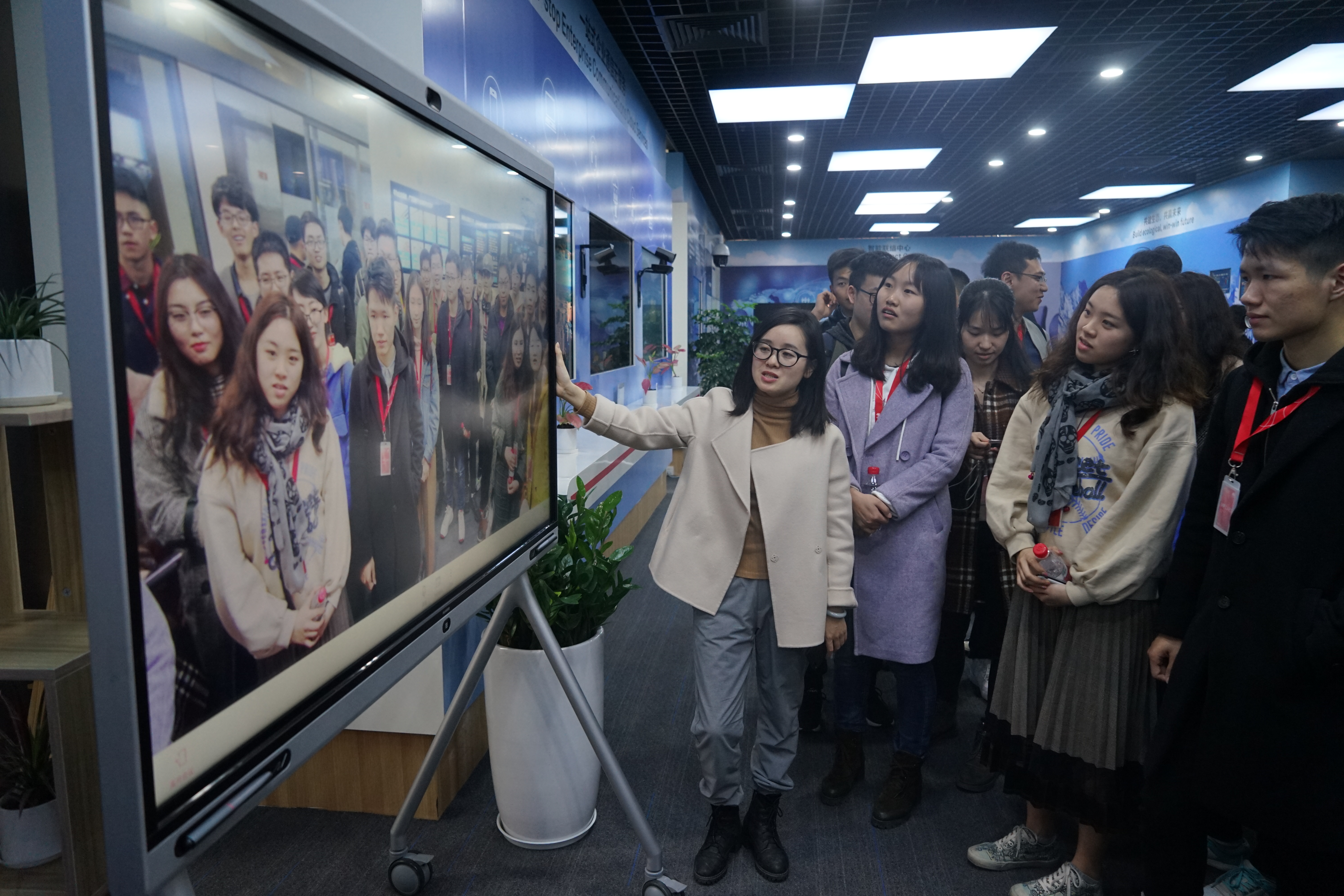 交流分享结束后,同学们前往展厅参观华为的部分产品。在展区,同学们领略了华为早期的会议投影设备、智能会议写字板、紧急调度指挥系统,以及智能化的会议厅设计。每一样产品都令同学们大开眼界。