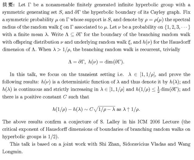 报告题目: Boundary of Branching Random Walks on Hyperbolic Groups