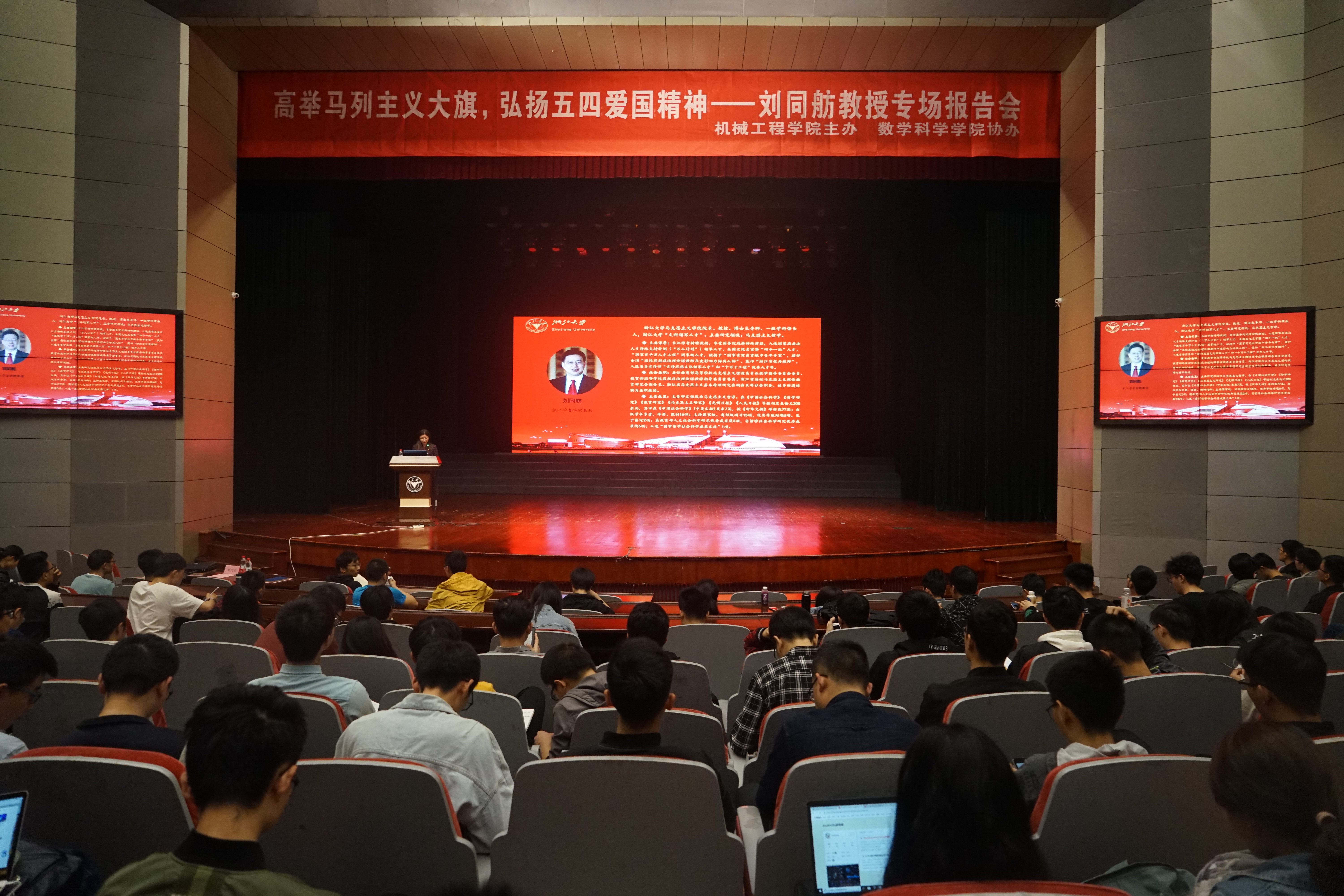 2019年4月28日,“高举马列主义大旗,弘扬五四爱国精神――‘先锋学子’党员专题学习会”在浙江大学玉泉校区永谦活动中心剧场顺利举办。本次专题学习会由机械工程学院主办,乐竞(中国)一站式服务平台协办。浙江大学马克思主义学院院长刘同舫教授应邀以“坚定马克思主义的理论自信”为主题展开宣讲。乐竞(中国)一站式服务平台、机械工程学院全体学生党员参加此次会议。