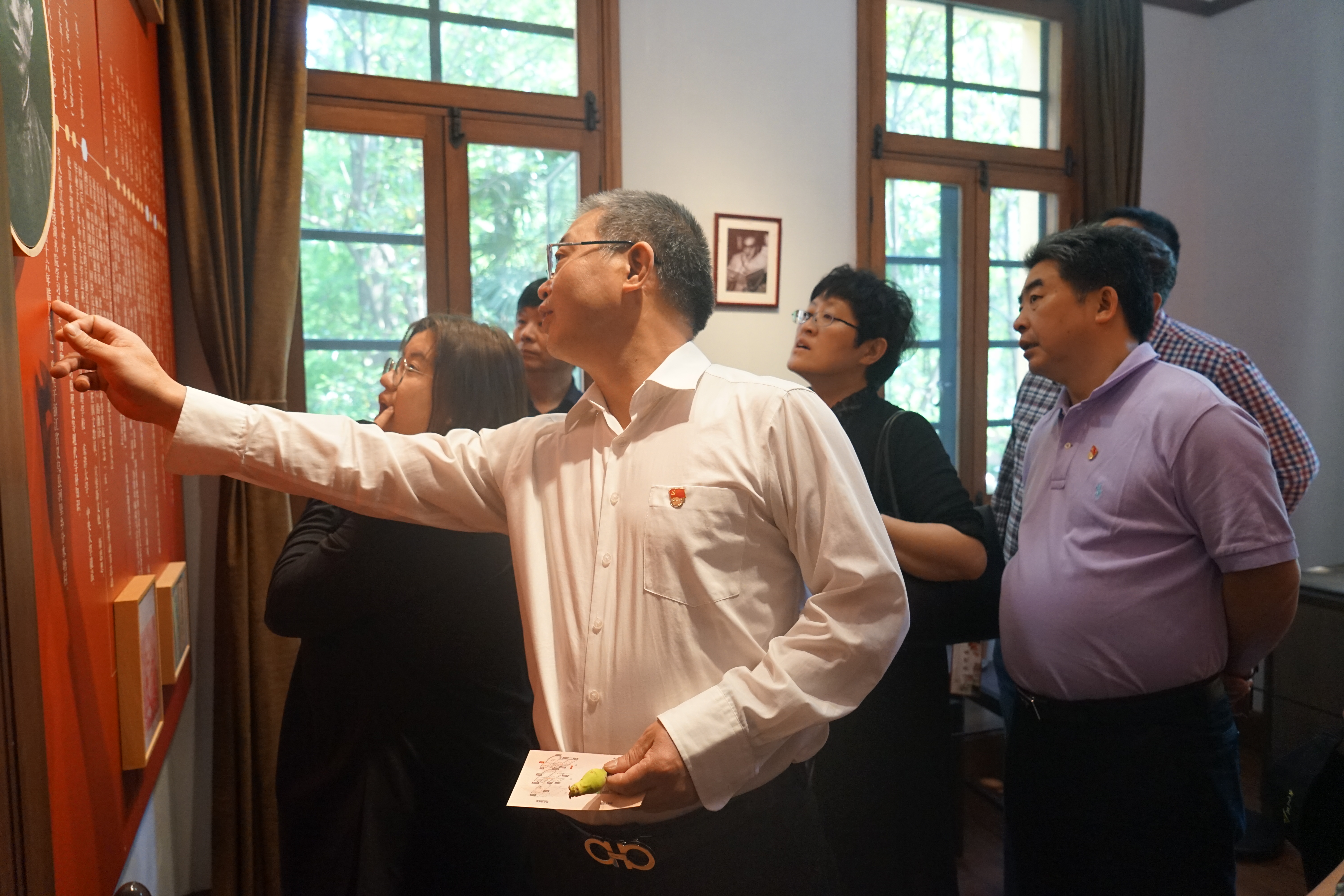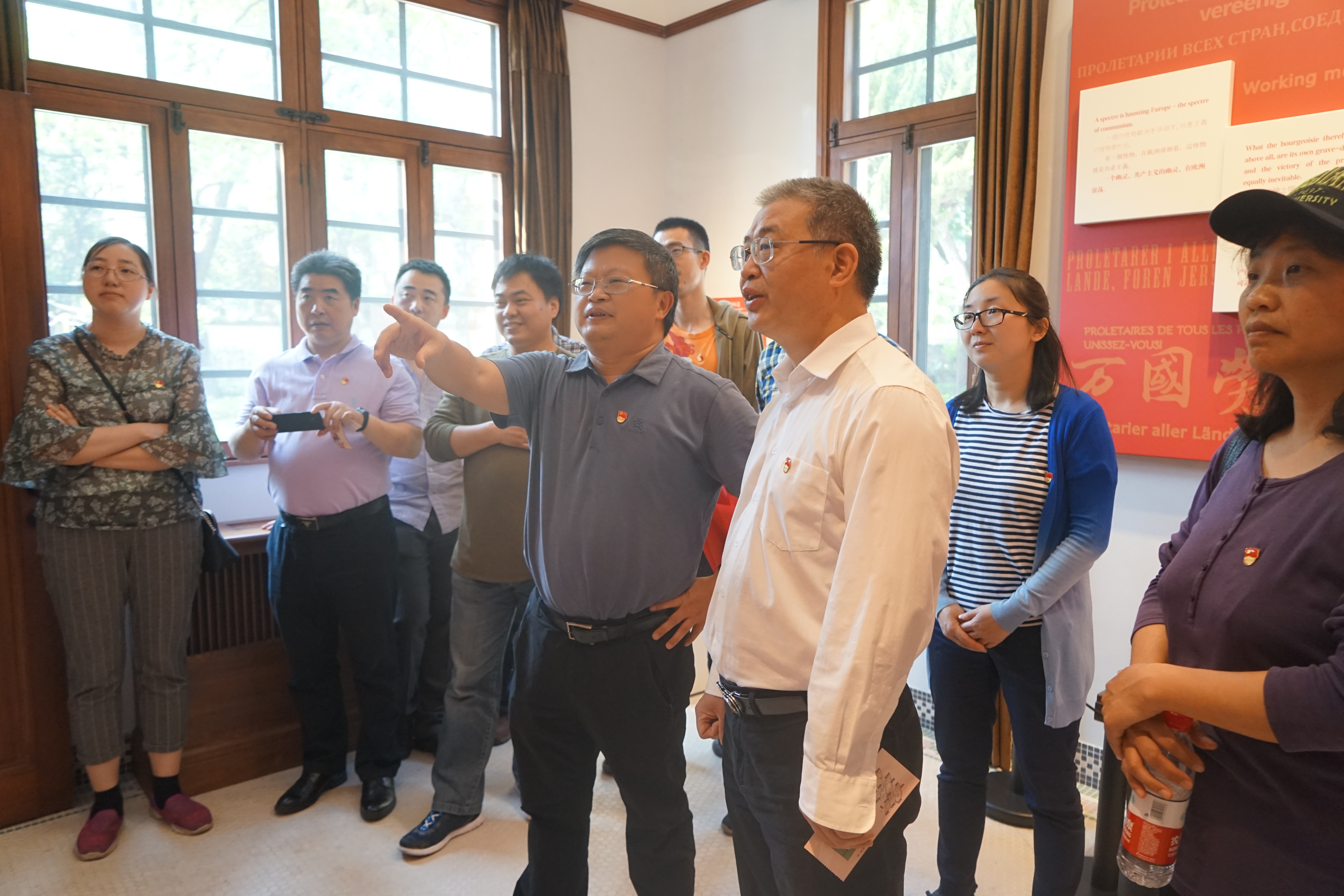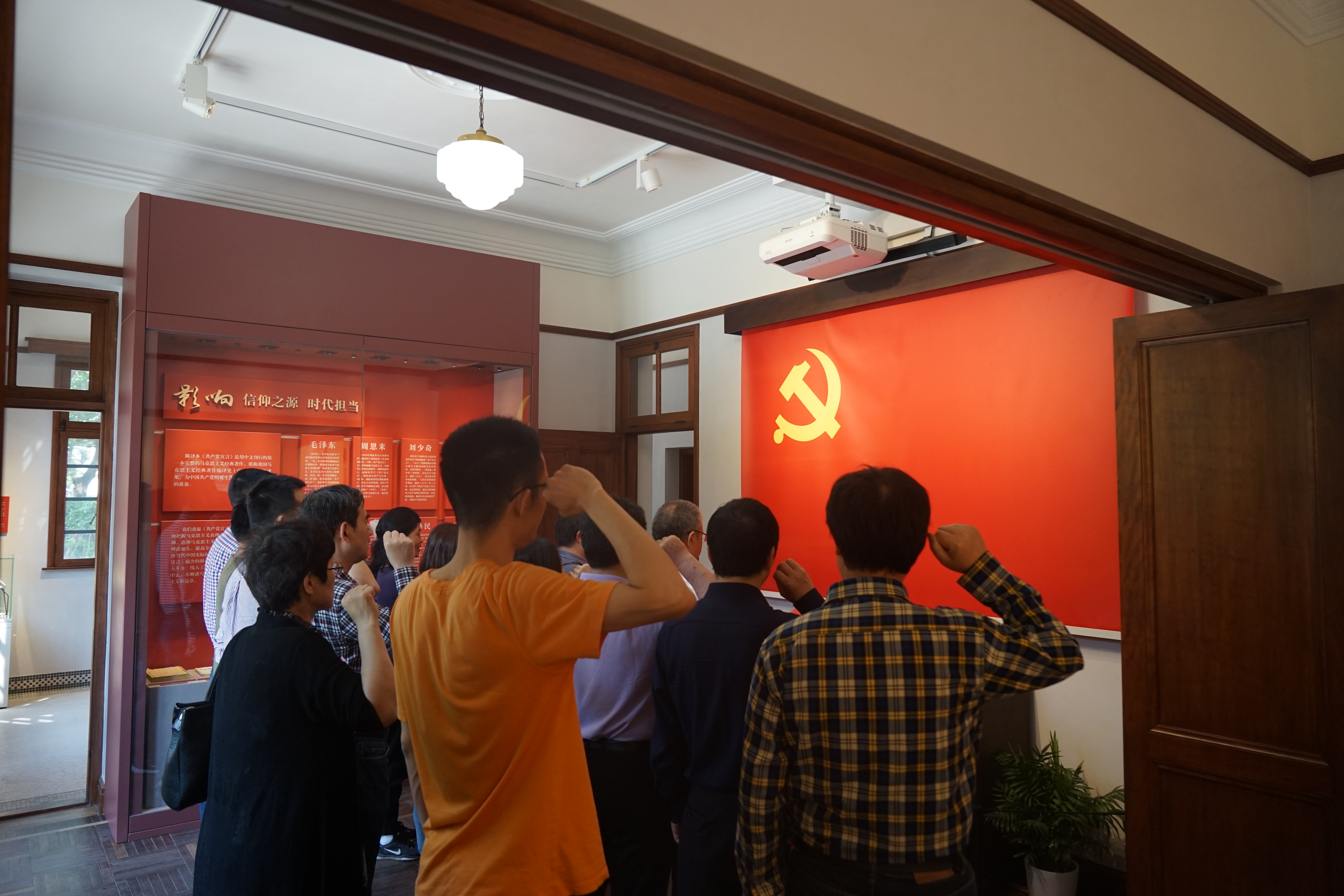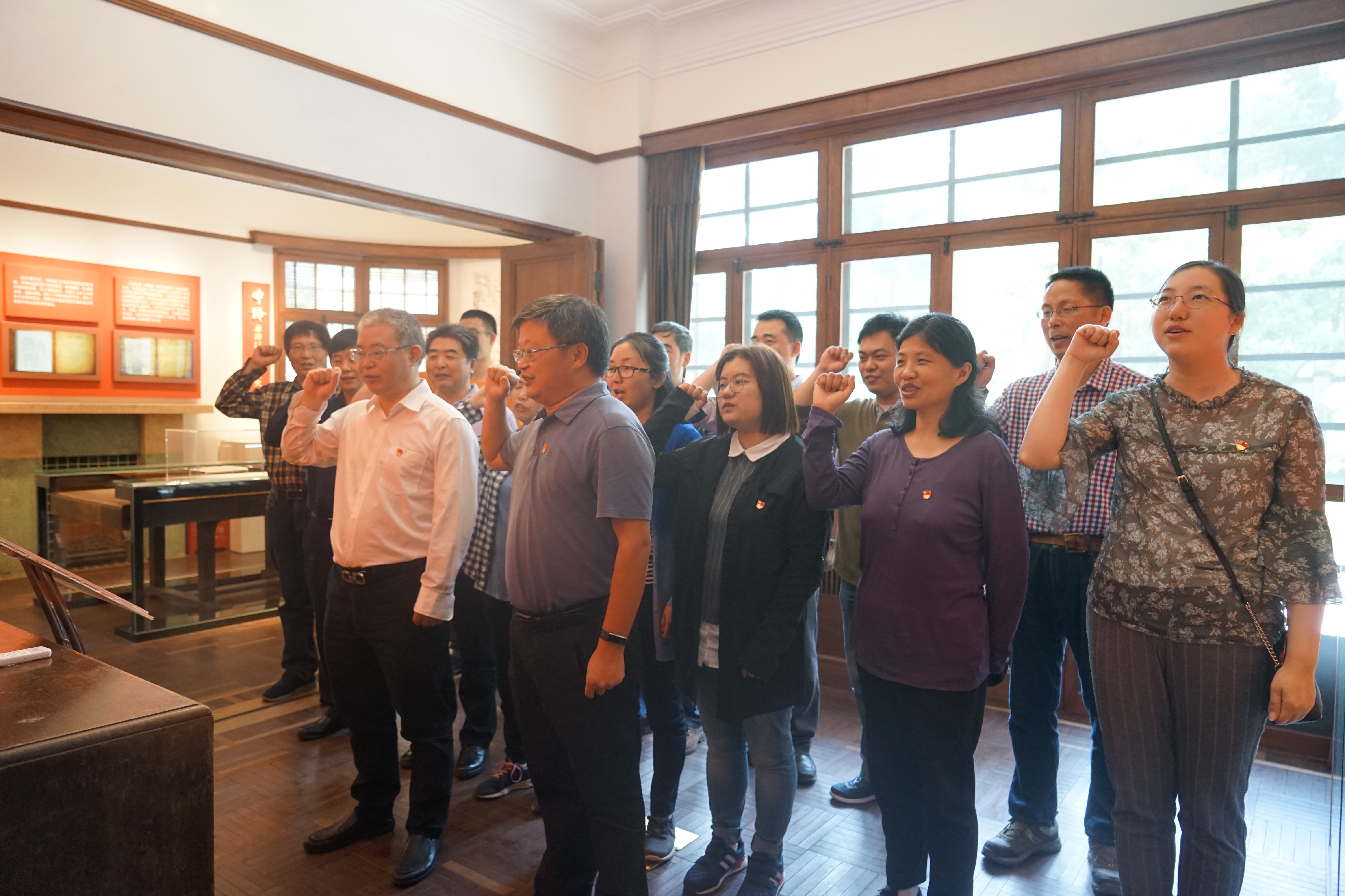 5月11日早上,培训班成员们来到浙江大学优秀校友陈望道的旧居。陈望道是中国共产党最早的党员之一,曾担任中共上海地方委员会首任书记,是首位将《共产党宣言》全文译成中文。陈望道先生于1913年在我校前身之江大学学习,修读数学,可以说是数学界中最早的党员之一。培训班成员们在此重温入党誓词,通过丰富的视频、图片、文字和实物展品,以及习总书记讲述陈望道老校友翻译《共产党宣言》故事的视频,一起回味了“真理的甜味”,重温了中国共产党筚路蓝缕、不懈奋斗的光辉历程,感悟“望道精神”。