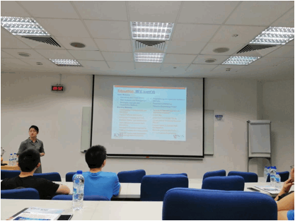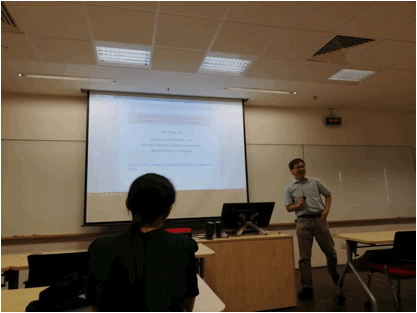 之后,朱成波教授向交流团详细地介绍了新加披国立大学数学系教学、研究的概况,以及数学系的研究生以及博士生项目。紧接着Toh Kim Chuan教授和Wang Dong博士给我们带来了关于凸聚类以及随机矩阵讲座,让我们受益匪浅。