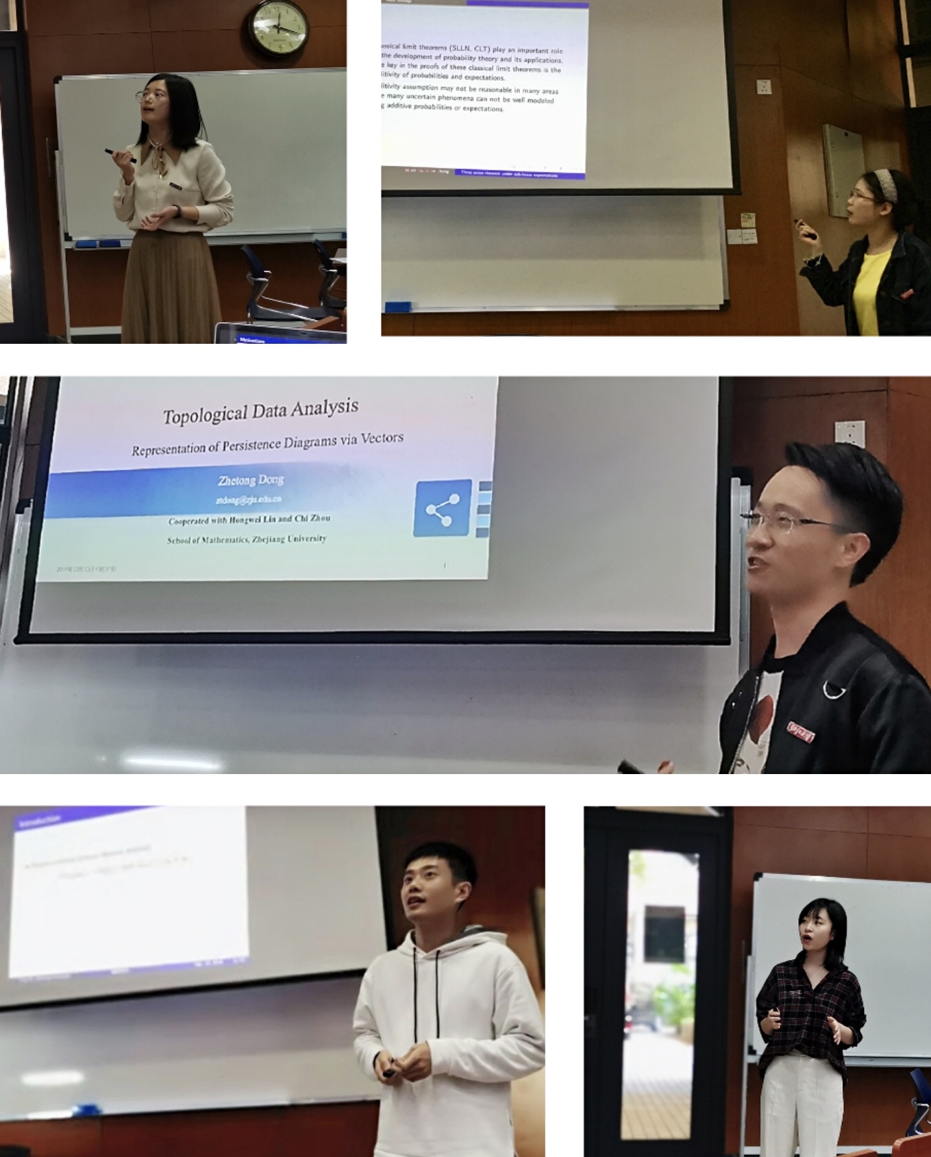 在论坛开幕式上,澳门大学数学系副主任郑智文教授对乐竞官网平台的到访表示欢迎。随后,澳门大学胡光辉副教授向同学们详细介绍了澳门大学的校园文化、研究水平、招研政策等。接着,双方就金融数学、统计学、数值代数、应用数学等方向开展学术报告与交流讨论。其中我院的谭晓宇同学介绍了基于随机波动率的VIX和VXX期权定价模型、许佳攀同学介绍了非线性期望下的三级数定理、谢放同学介绍了求解非线性方程组的修正牛顿SHSS方法、陈嘉琪同学介绍了随机双块Kaczmarz方法的误差估计,董哲同同学介绍了有关于拓扑数据分析的相关研究。师生们就报告内容积极参与交流和提问,提出观点和建议。