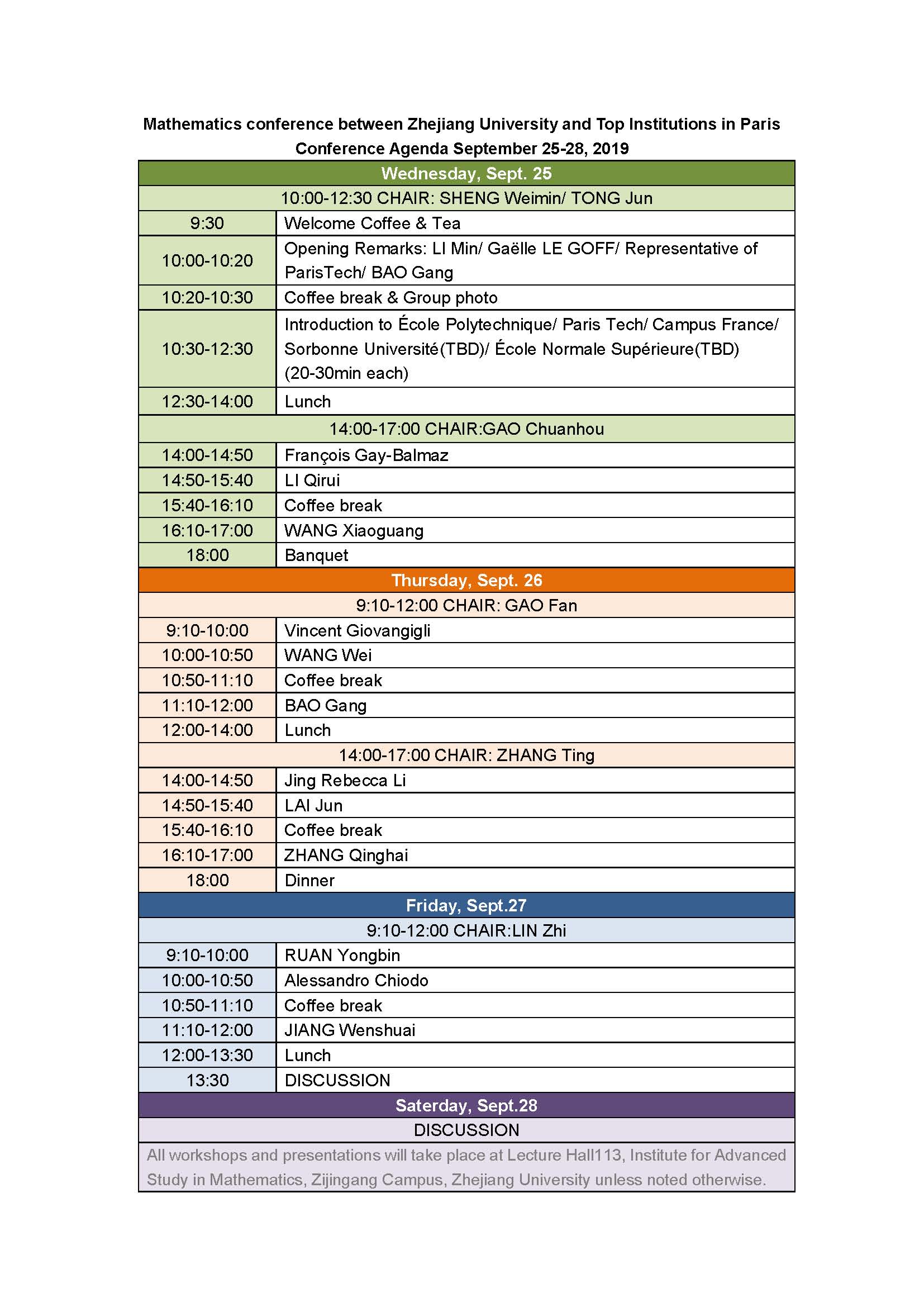 •Location: Institute for Advanced Studyin Mathematics, Zijingang Campus, Zhejiang University (ZJU), Hangzhou, China