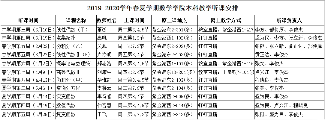 本学期本科教学听课安排请见下表,欢迎老师们前去听课!