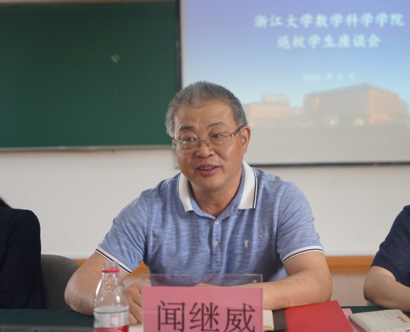 最后,闻书记用“信仰、责任、情感、梦想”四个关键词总结本次座谈会、寄托对在座同学及全院同学的期望。他提出,作为数学学子,应兼顾政治信仰与专业信仰。他援引希尔伯特“数学无应用”之见解,在当今时代,我们应该坚守数学研究的初心,打好理论基础。学院是个大家庭,每位师生都是这个家庭里的一员,这里寄托了一代代数学人的希望和情感,每名师生也都有参与学院建设的责任,“振兴浙大数学”的梦想不仅仅是一句口号,希望大家都能勇立潮头,干到实处。