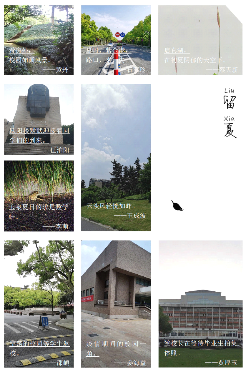 空荡的校园等学生返校。 ——邵頔 疫情期间的校园一角。 ——姜海益 竺校长在等待毕业生拍集体照。 ——贾厚玉