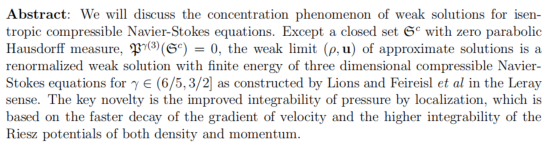Concentration phenomenon of weak solutions for compressible isentropic Navier-Stokes equations in dimensions three