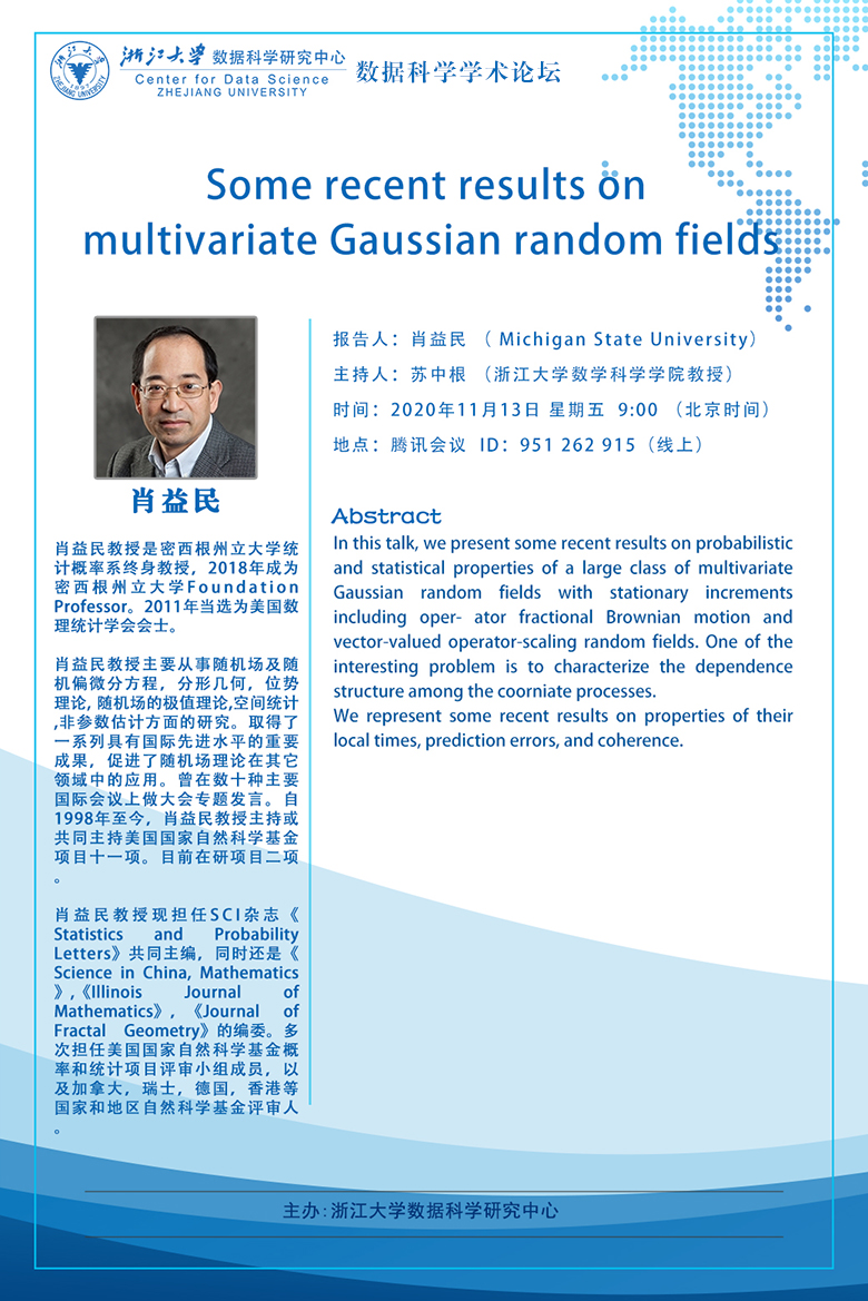 学术科研 学术团队 学术活动 学术会议 学术报告 讨论班 School Colloquium 信息公告 文件汇编 2020 乐竞官网平台 > Some recent results on multivariate Gaussian random fields 来源:乐竞(中国)一站式服务平台 发布时间:2020-11-06 453