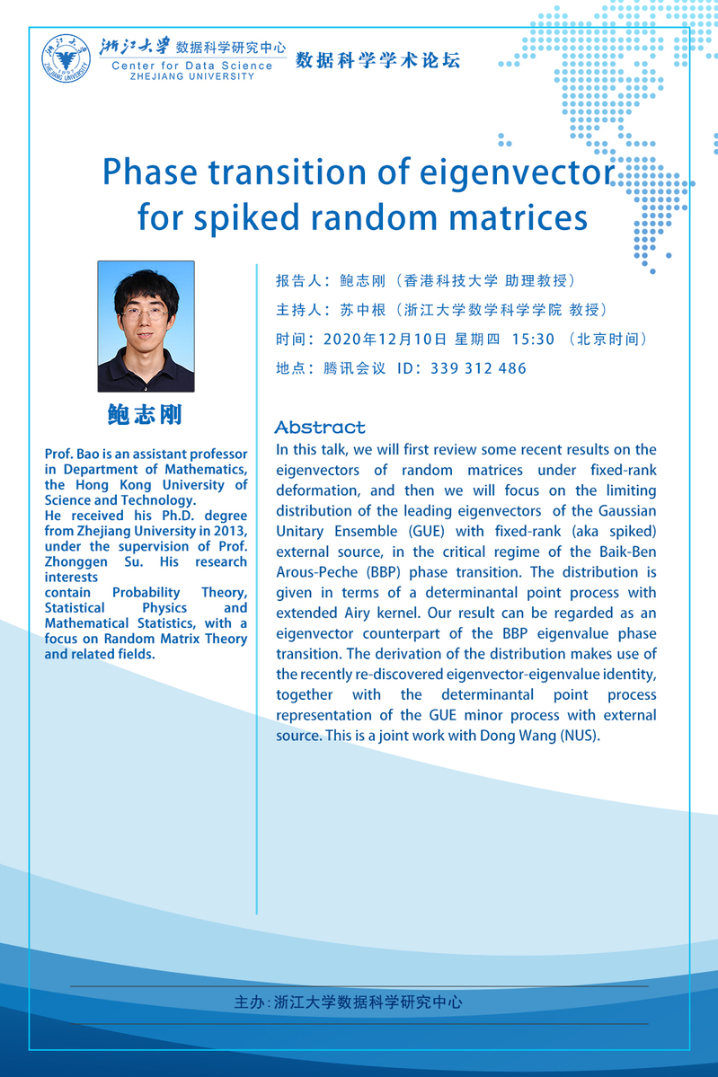 学术科研 学术团队 学术活动 学术会议 学术报告 讨论班 School Colloquium 信息公告 文件汇编 2020 乐竞官网平台 > Phase transition of eigenvector for spiked random matrices 来源:乐竞(中国)一站式服务平台 发布时间:2020-12-02 592