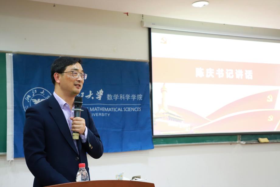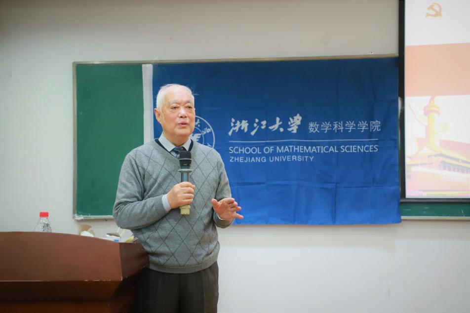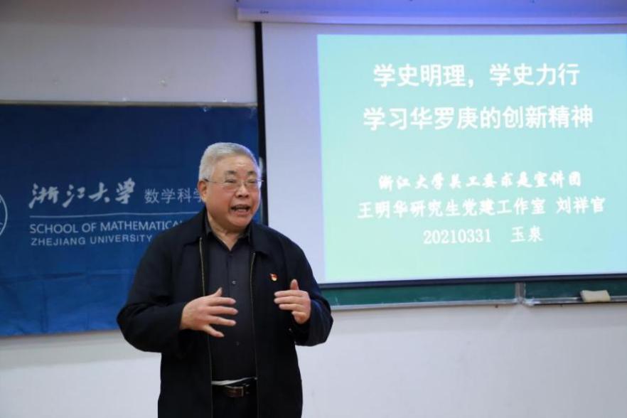 刘祥官教授结合党史学习主题,以“开天辟地、改天换地、战天斗地、翻天覆地、惊天动地、顶天立地”六个“天地”为关键词,简述了中国共产党从创立到今天的发展繁荣,带领全国人民自力更生搞建设,改革旧貌换新颜,脱贫攻坚奔小康,最终实现民族复兴新伟业的奋斗历程;以著名科学家华罗庚、钱学森等人矢志报国、一心为民、开拓创新的科学家精神,为青年学子指明了科研报国的道路。在浙大数学的发展历程中,也有许多这样的科学家,当代学生党员应努力传承科学家精神,打好基础、敢于思考、不断创新,面向国家需求,解决实际问题,为国家建设发展贡献力量。