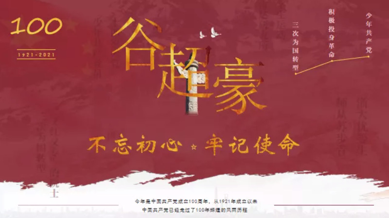 1937年日本入侵中国,谷超豪先生的家乡温州经常遭受日本空军轰炸,日寇的暴行激起了谷超豪内心强烈的爱国热情。1939 年,他参加温州中学学生抗日宣传队,下乡宣传抗日。1940年,14岁的谷超豪就在哥哥的影响下加入了中国共产党。