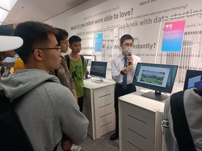 在讲解员的带领下,强基数学2001班同学先参观了计算机科学技术学院位于月牙楼的展厅,接触并了解到了“墨染”“飞影”“余音”等一系列由学校师生完成的人工智能项目,深切感受到人工智能技术对社会发展的巨大推动作用。
