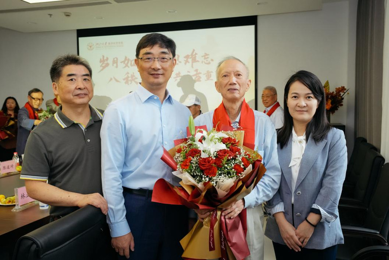 陈庆代表学院党政对各位退休教师表示热诚的欢迎,并致以国庆节、重阳节的节日问候。与会学院领导向各位退休教师赠送鲜花和象征福寿的红色围巾,对退休教师们勤勉一生、为学院建设发展做出的卓越贡献表示衷心的感谢,并祝愿各位老师身体康健、寿比南山。