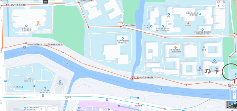 下午13:30 出发,海纳苑2 幢(起点)——紫金港校区南大门打卡——余杭塘河游步道——海纳苑 2 幢(终点)(详见附图)