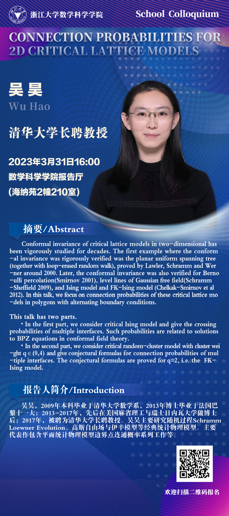 学术科研 学术团队 学术活动 学术会议 学术报告 讨论班 School Colloquium 信息公告 文件汇编 学术报告 乐竞官网平台 > School Colloquium——Connection probabilities for 2D critical lattice model 来源:乐竞(中国)一站式服务平台 发布时间:2023-03-29 389