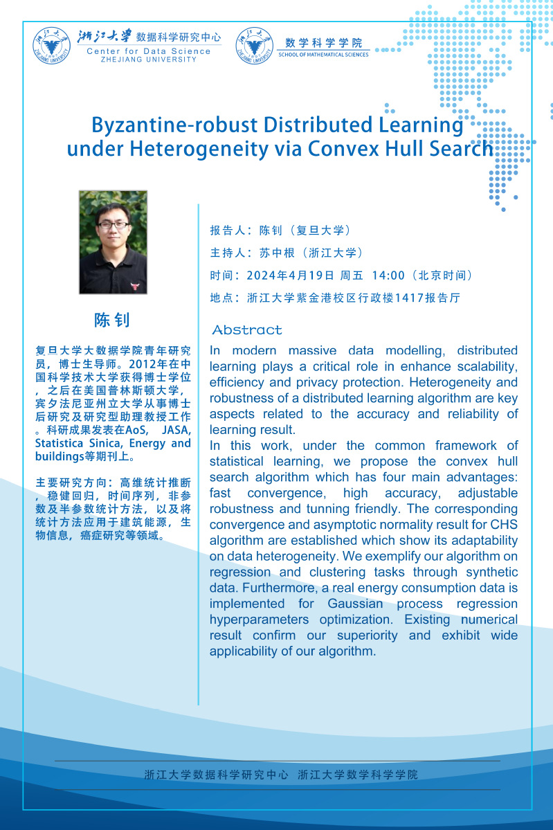 学术科研 学术团队 学术活动 学术会议 学术报告 讨论班 School Colloquium 信息公告 文件汇编 概率统计讨论班 乐竞官网平台 > 概率统计讨论班——Byzantine-robust Distributed Learning under Heterogeneity via Convex Hull Search 来源:乐竞(中国)一站式服务平台 发布时间:2024-04-18 240