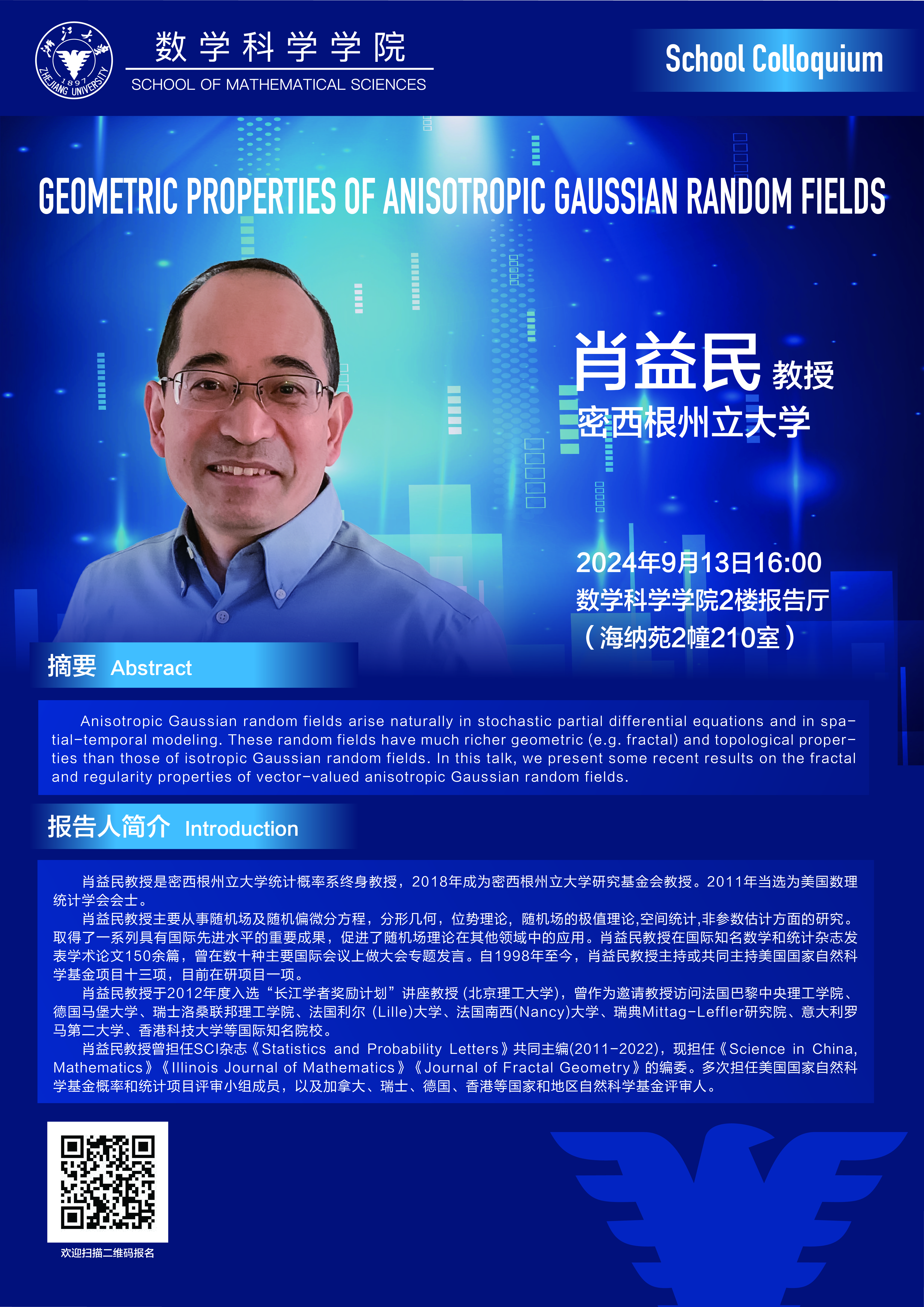 学术科研 学术团队 学术活动 学术会议 学术报告 讨论班 School Colloquium 信息公告 文件汇编 School Colloquium 乐竞官网平台 > School Colloquium——GEOMETRIC PROPERTIES OF ANISOTROPIC GAUSSIAN RANDOM FIELDS 来源:乐竞(中国)一站式服务平台 发布时间:2024-09-06 432