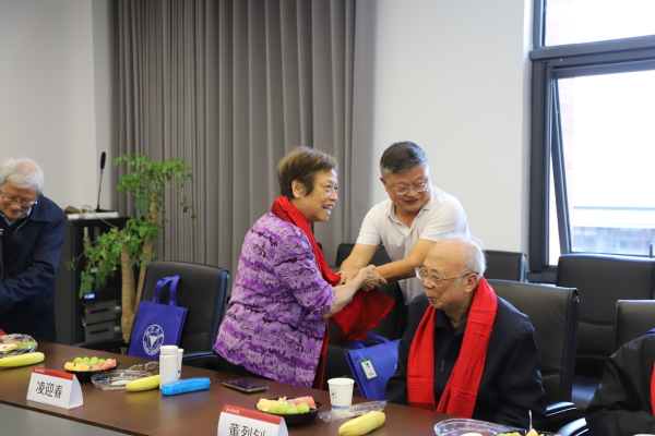 学院领导向各位退休教师赠送鲜花和象征福寿永康的红色围巾,对退休教师们数十年来躬耕教坛、潜心育才,以伟大的教育家精神铸魂育人,为学院建设发展做出的卓越贡献表示衷心的感谢,并与各位教师共贺集体生日,祝愿各位老师身体健康、万事如意。