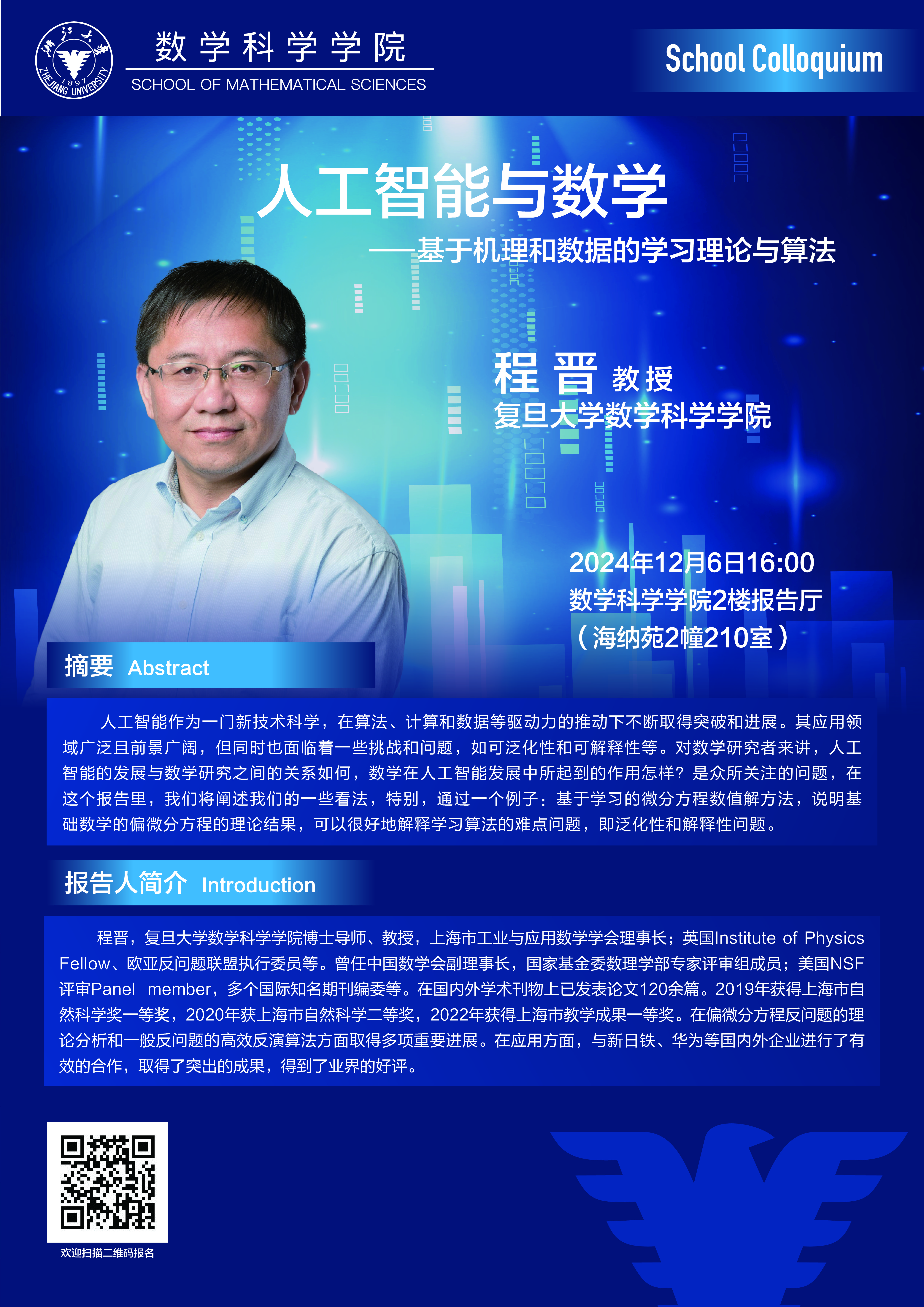通知公告 通知公告 学术活动 学术会议 新闻图片 院系新闻 院内邮件 2024 乐竞官网平台 > School Colloquium——人工智能与数学--基于机理和数据的学习理论与算法 来源:乐竞(中国)一站式服务平台 发布时间:2024-12-03 248