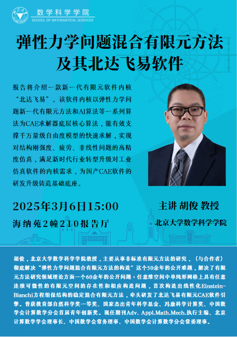 学术科研 学术团队 学术活动 学术会议 学术报告 讨论班 School Colloquium 信息公告 文件汇编 讨论班 乐竞官网平台 > 计算与应用讨论班—— 弹性力学问题混合有限元方法及其北达飞易软件 来源:乐竞(中国)一站式服务平台 发布时间:2025-03-04 164