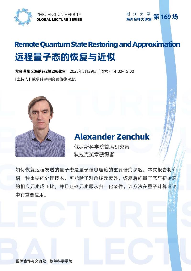 通知公告 通知公告 学术活动 学术会议 新闻图片 院系新闻 院内邮件 2025 乐竞官网平台 > 海外名师大讲堂——Remote quantum state restoring and approximation 来源:乐竞(中国)一站式服务平台 发布时间:2025-03-19 201