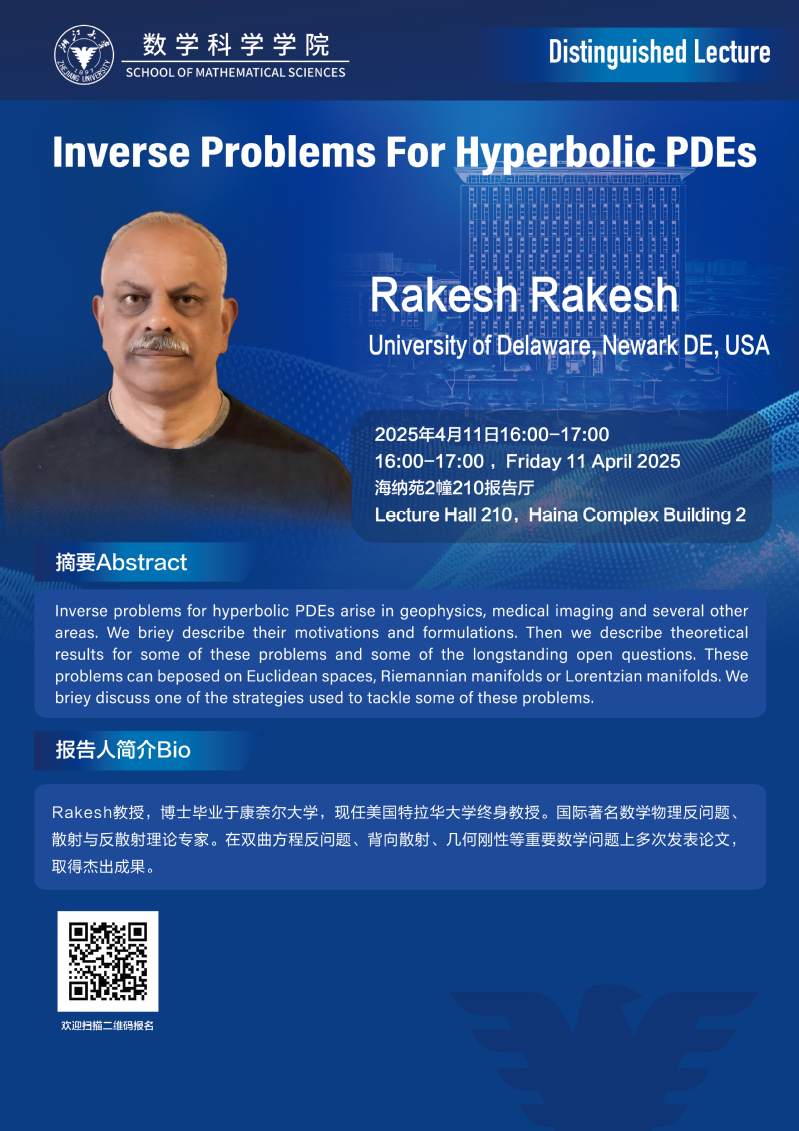 学术科研 学术团队 学术活动 学术会议 学术报告 讨论班 School Colloquium 信息公告 文件汇编 School Colloquium 乐竞官网平台 > Distinguished Lecture——Inverse Problems For Hyperbolic PDEs 来源:乐竞(中国)一站式服务平台 发布时间:2025-04-07 18