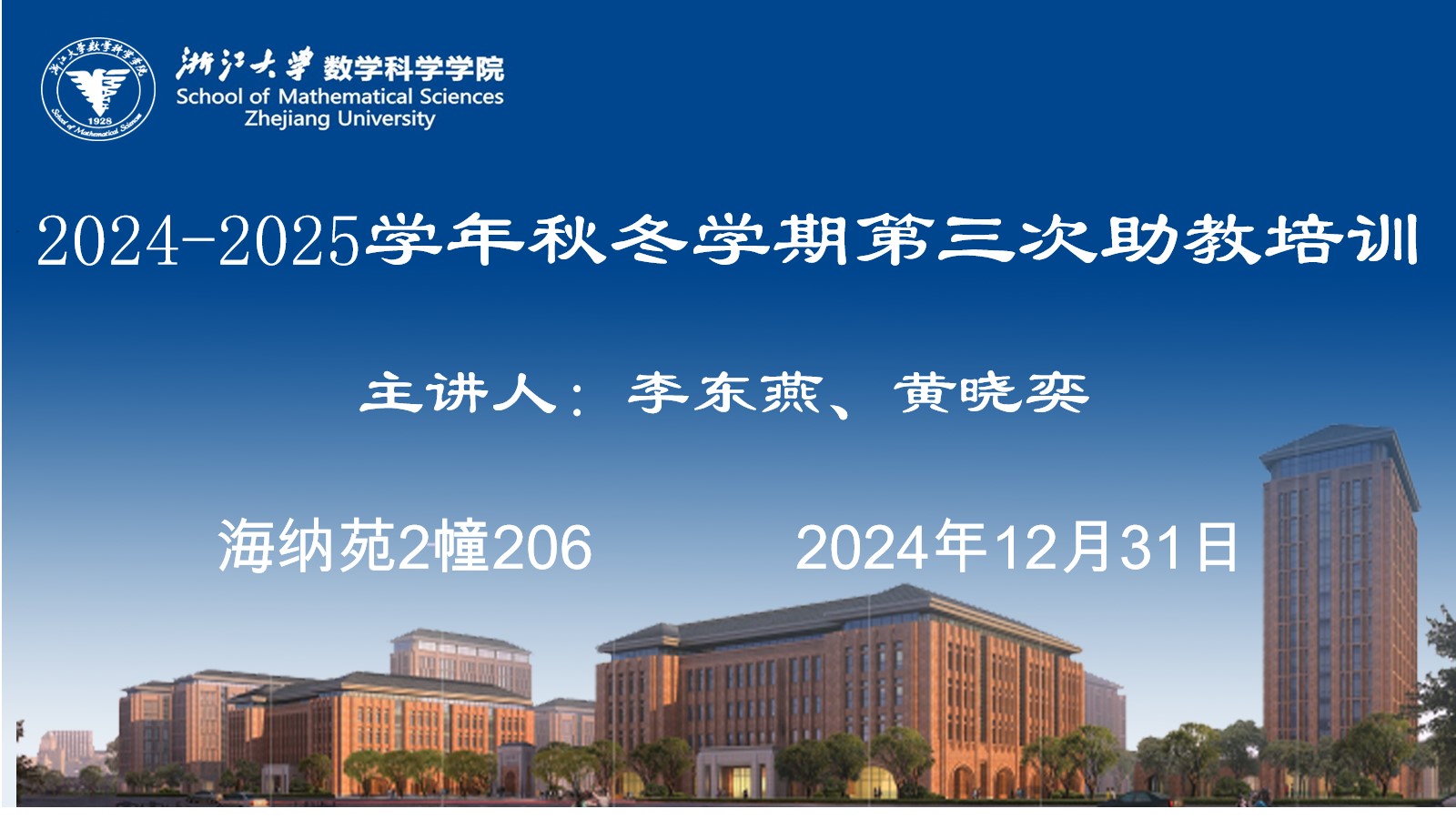 本科生 信息公告 教研动态 代数和几何系列 分析和方程系列 统计学系列 信息与计算科学系列 微积分系列 线性代数系列 高等数学系列 微分方程与复变函数系列 其他 学籍管理 实践教学 对外交流 培养方案 政策文件 会议纪要 其他 乐竞官网平台 > 2024-2025学年秋冬学期第三次助教培训会议 来源:乐竞(中国)一站式服务平台 发布时间:2024-12-27 16