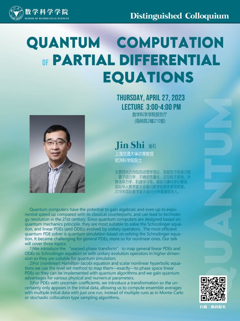 Seminars Seminars School Colloquium Conferences Position : homepage EVENTS Seminars Distinguished Lecture : Quantum Computation of partial differential equations 2023-04-27 15:00:00 2023-04-27 15:00:00 2023-04-27 15:00:00 Speaker : 3:00PM, Jin Shi Time : 2023-04-27 15:00:00 Location : Date: 2023-04-27 Visitcount : 67