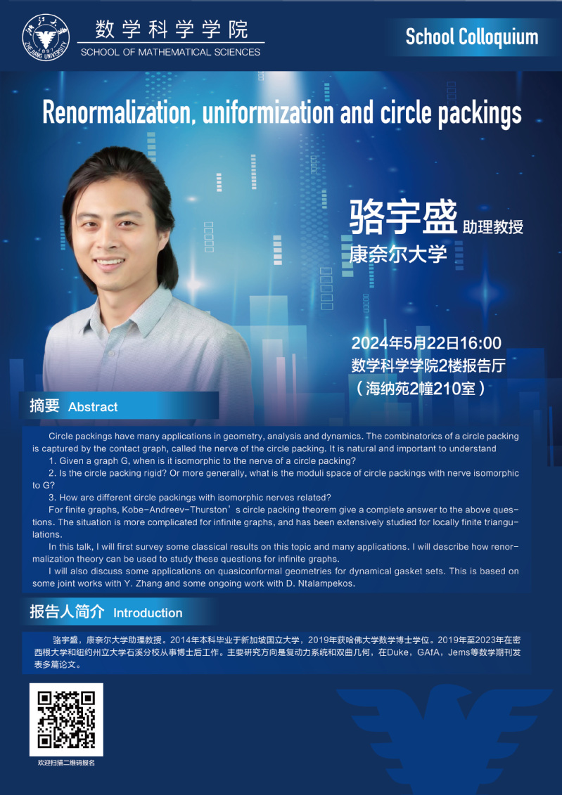 School Colloquium——Renormalization, uniformization and circle packings
