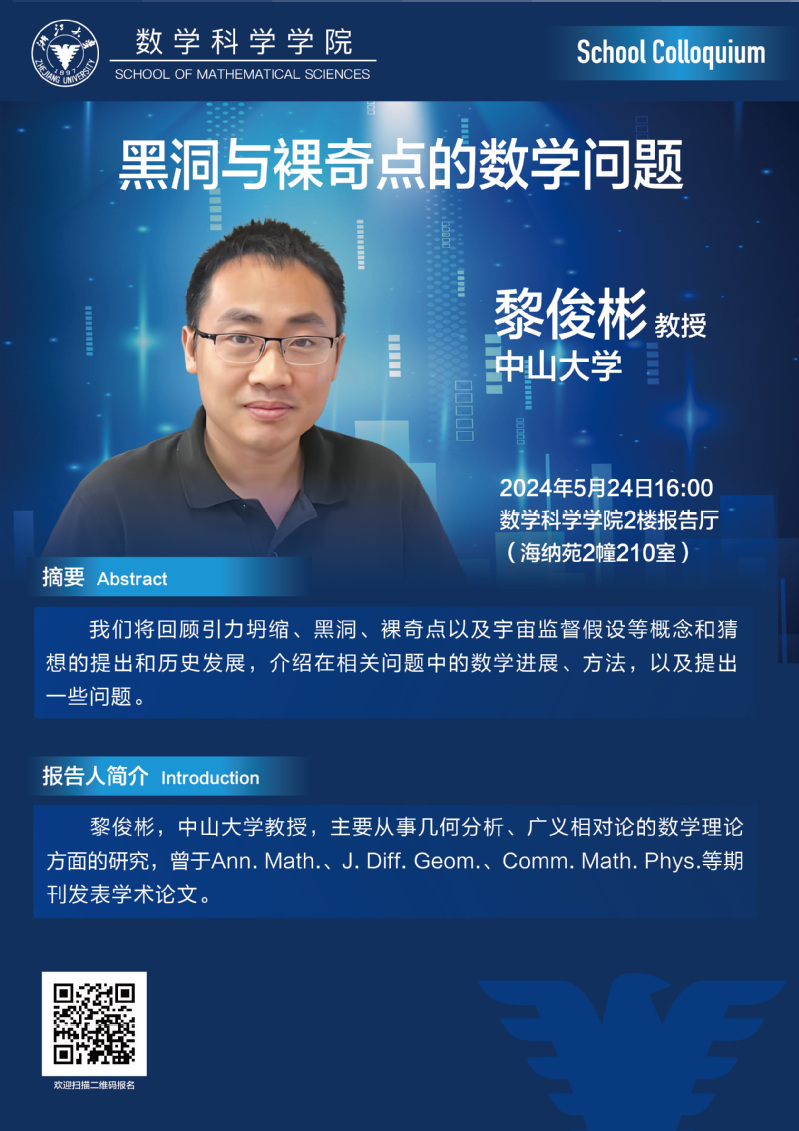 Seminars Seminars School Colloquium Conferences Position : homepage EVENTS Seminars School Colloquium——黑洞与裸奇点的数学问题 2024-05-24 16:00:50 2024-05-24 16:00:50 2024-05-24 16:00:50 Speaker : Junbin Li,Sun Yat-sen University Time : 2024-05-24 16:00:50 Location : 210 Haina Complex Building 2 Date: 2024-05-21 Visitcount : 126