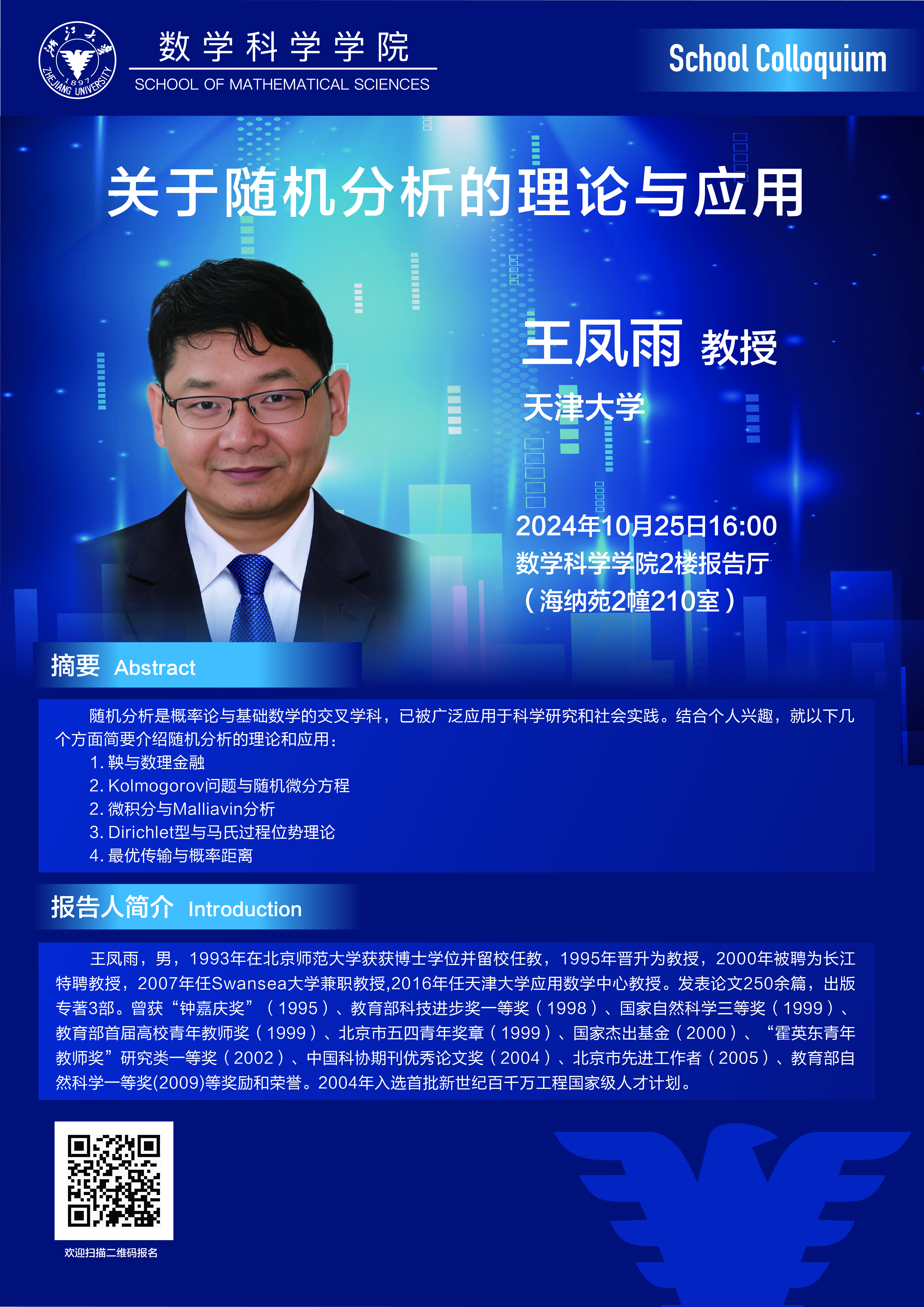 Seminars Seminars School Colloquium Conferences Position : homepage EVENTS Seminars School Colloquium——关于随机分析的理论与应用 2024-10-25 16:00:00 2024-10-25 16:00:00 2024-10-25 16:00:00 Speaker : Fengyu Wang, Tianjin University Time : 2024-10-25 16:00:00 Location : 210 Haina Complex Building 2(海纳苑) Date: 2024-10-17 Visitcount : 52